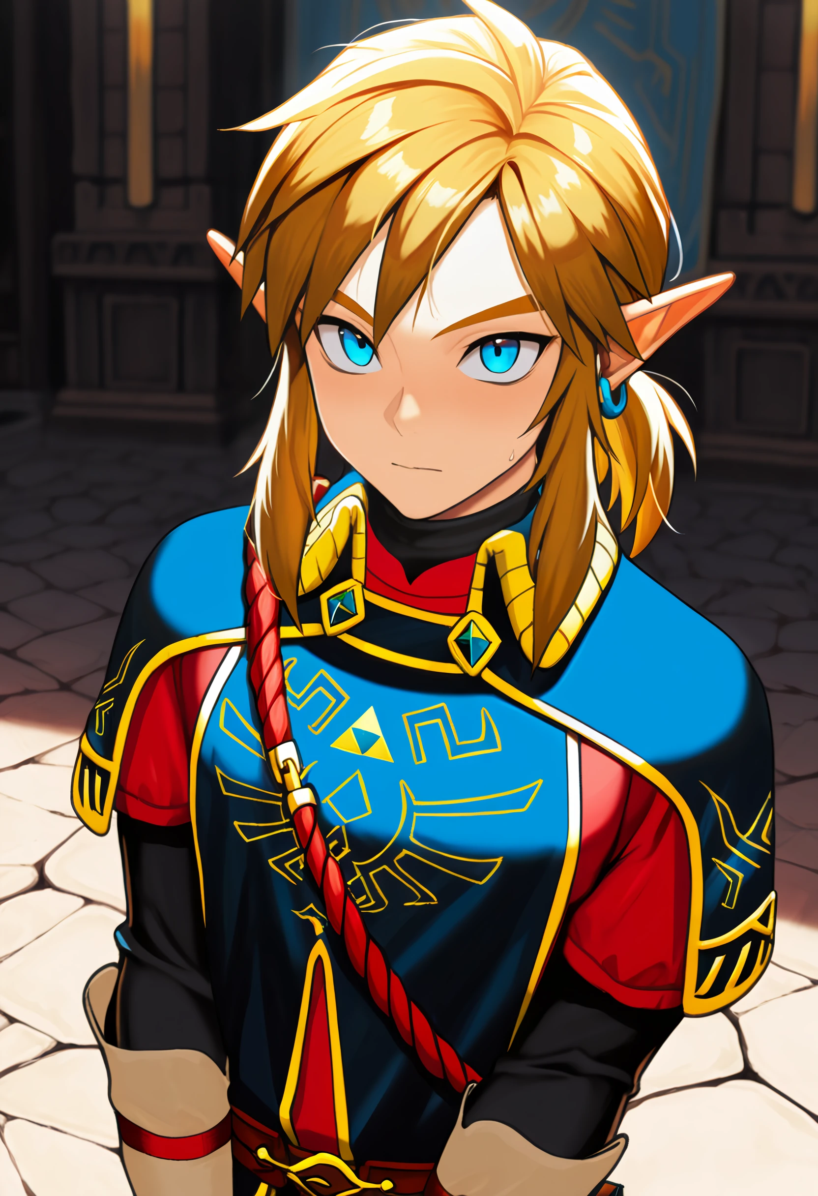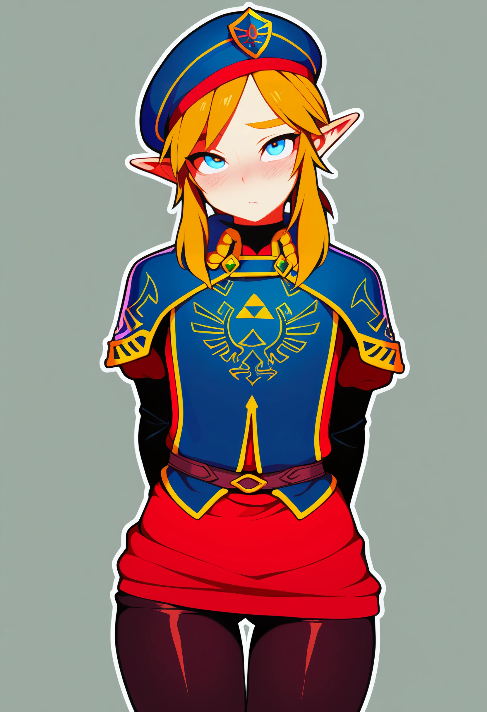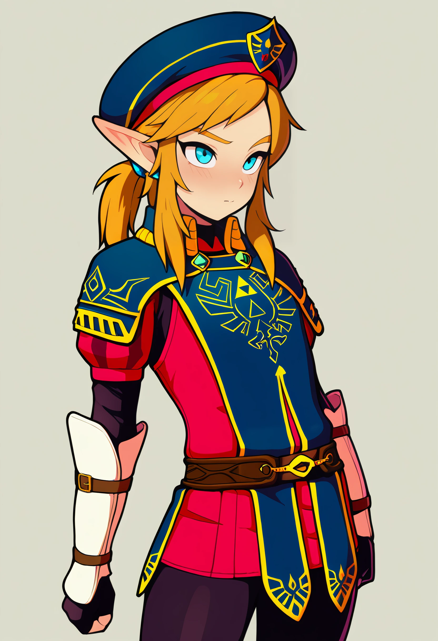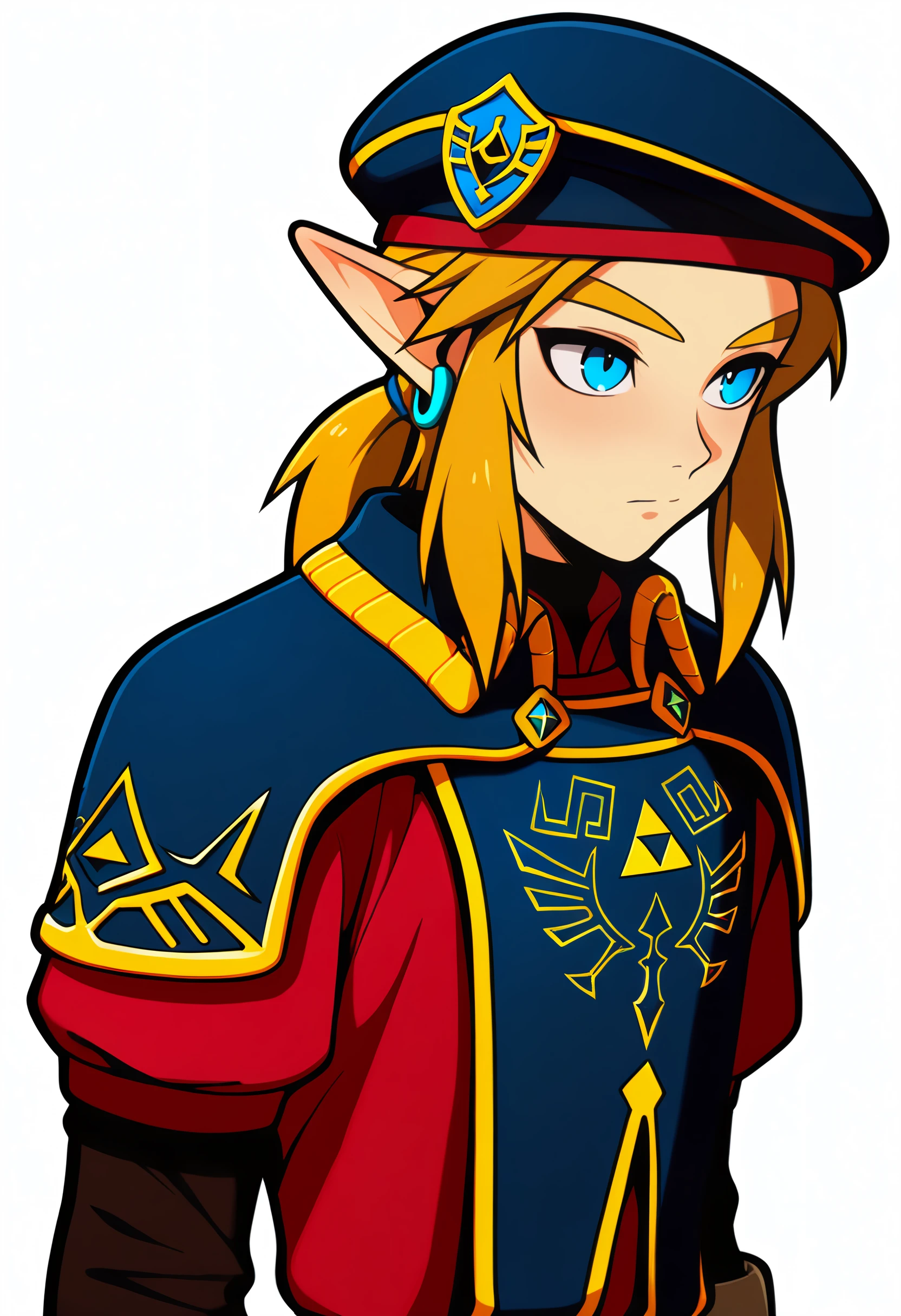 royal guard, link, 1boy, solo, blue eyes, beret, hat,SD1.5
