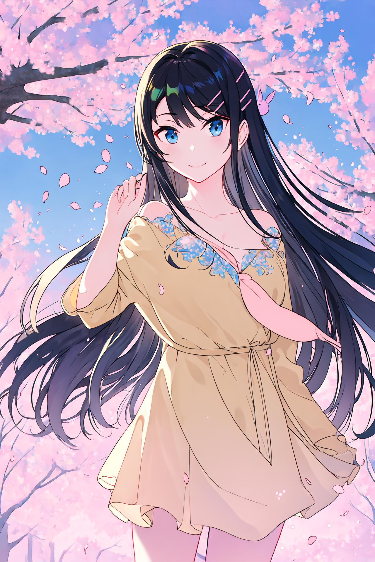black hair, long hair, haircliponly is enough,rabbit hair ornamentalso helps;For her school uniform costume, add the following prompts to the base prompt: