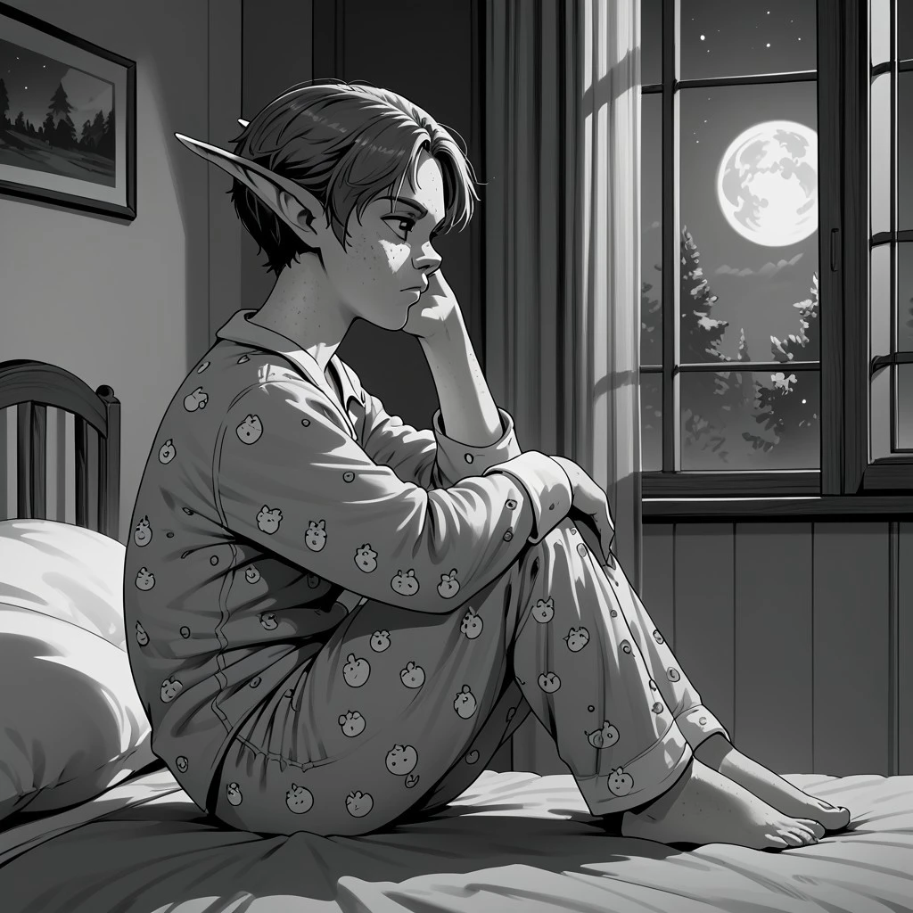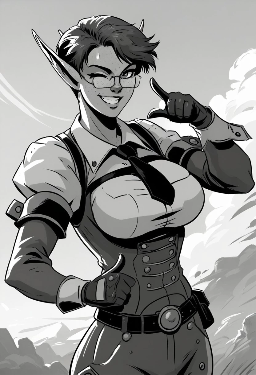unconspelf, elf, 1girl, freckles, pointy ears, short hair