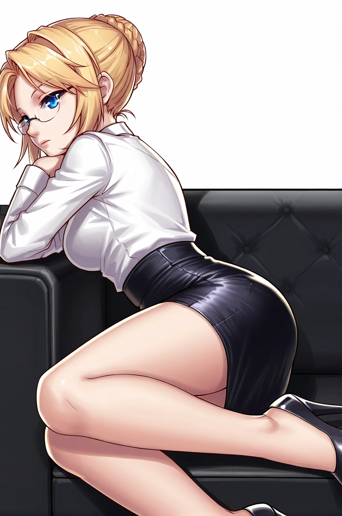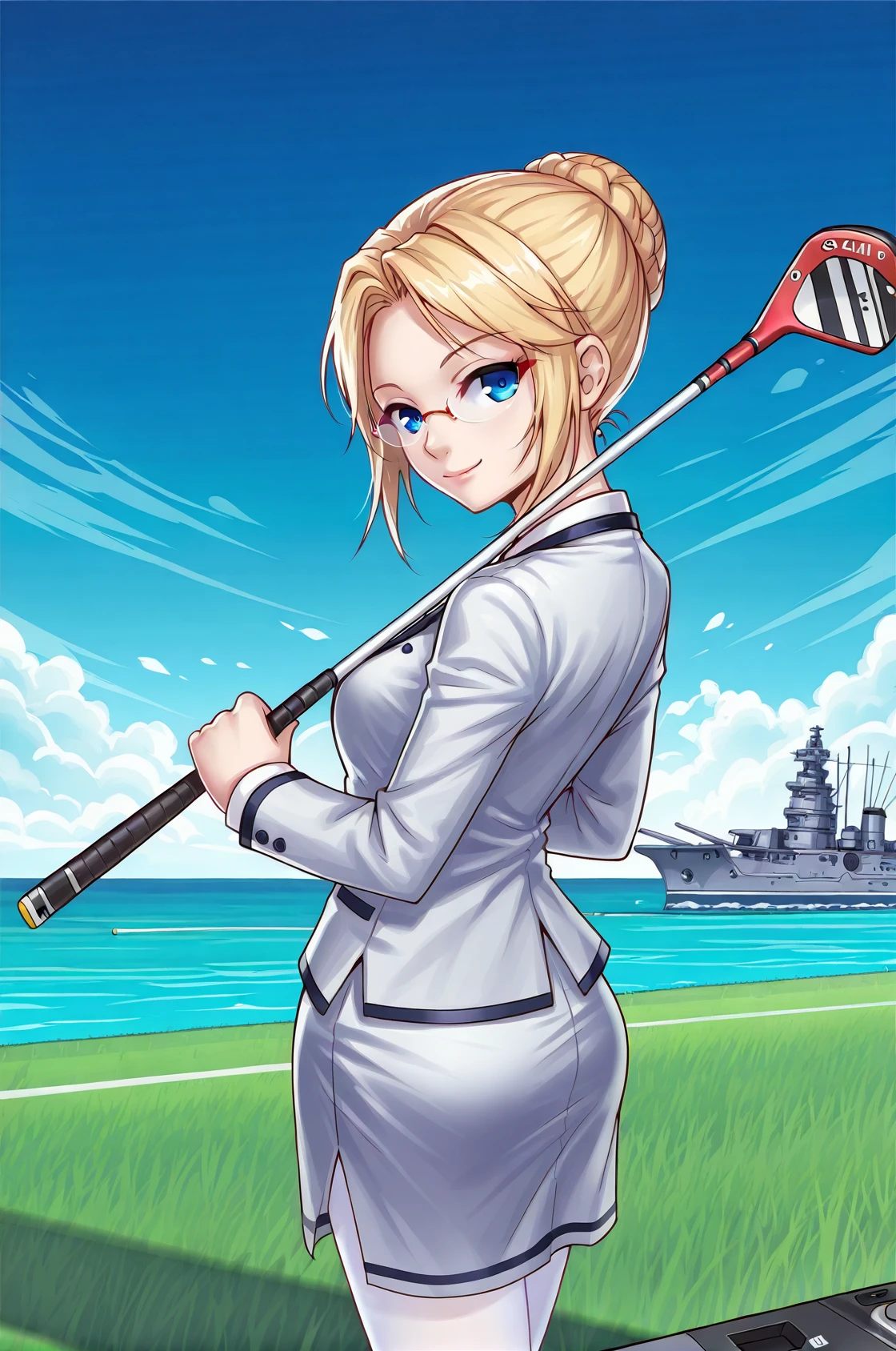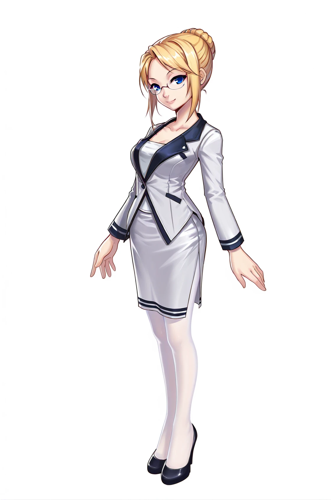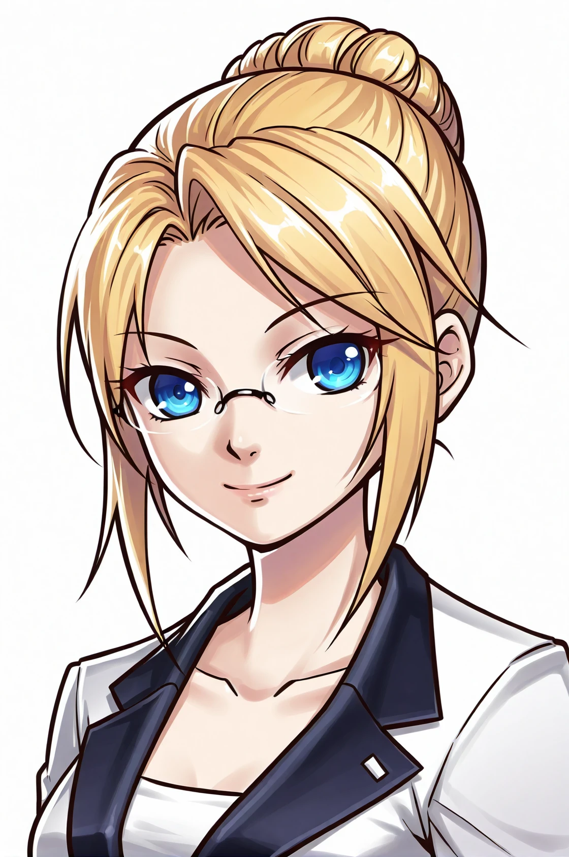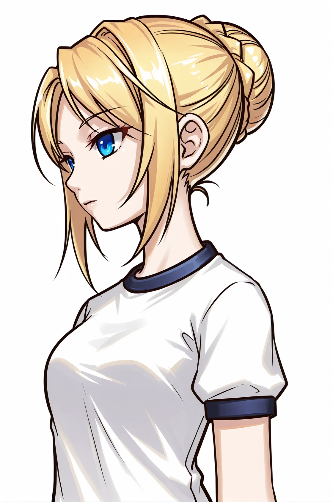 prompt: ceciliaPangya, blonde hair, bun hair, blue eyes