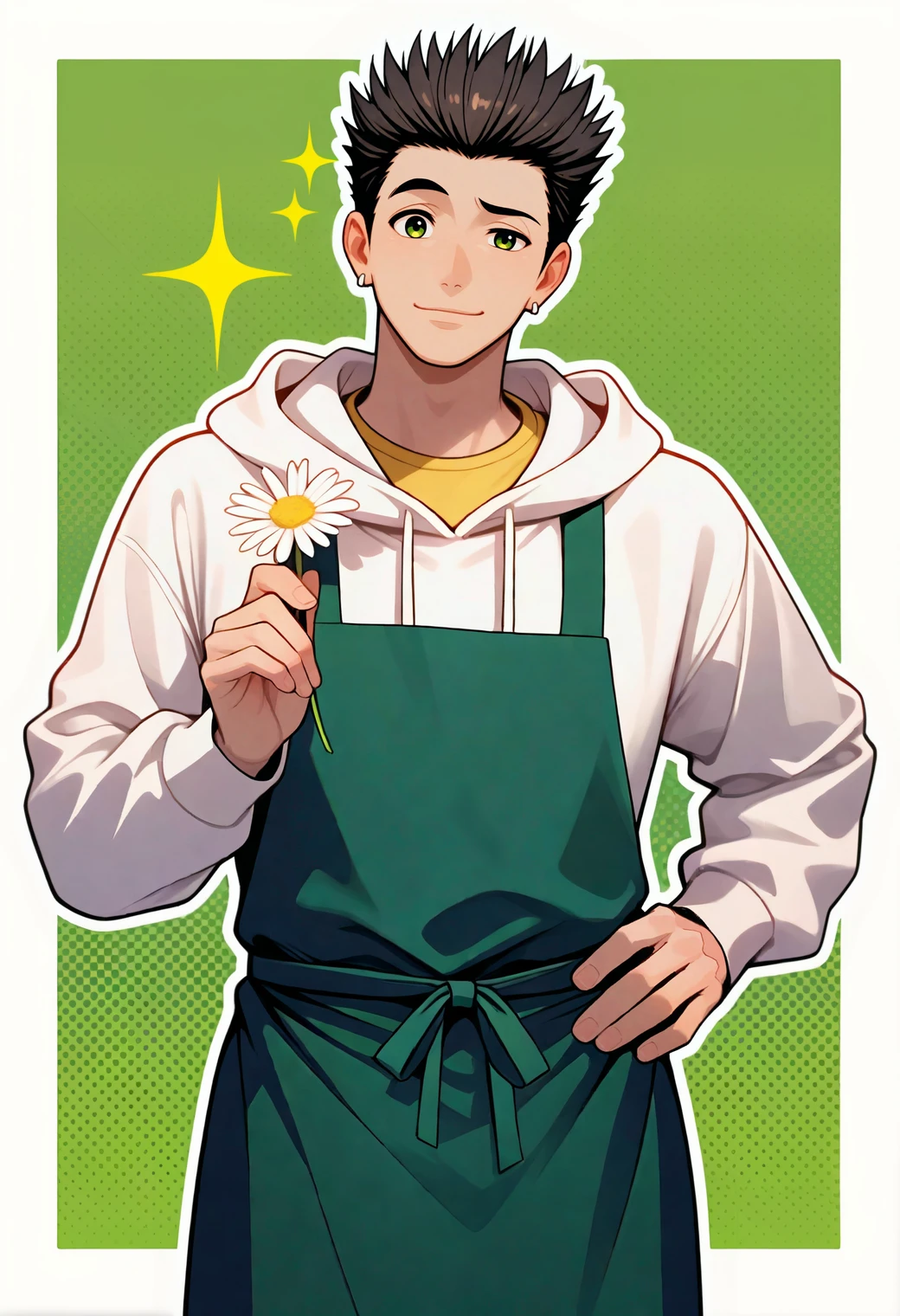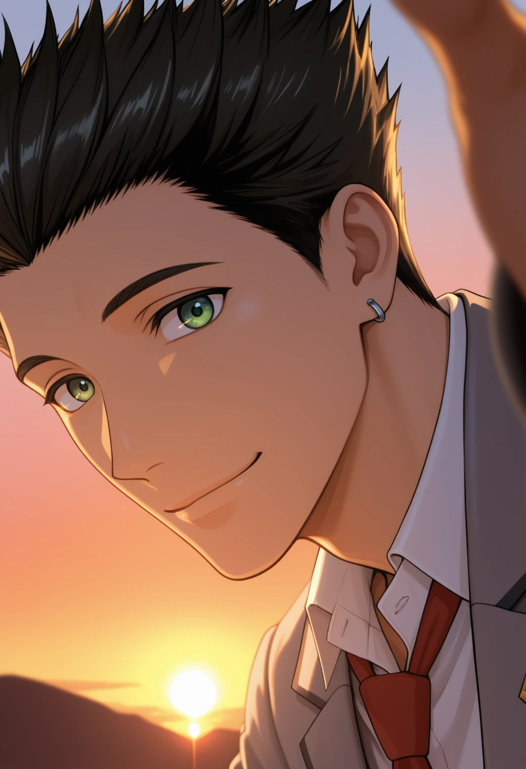 mm4s4k1,black hair,spiked hair,green eyes,earrings,