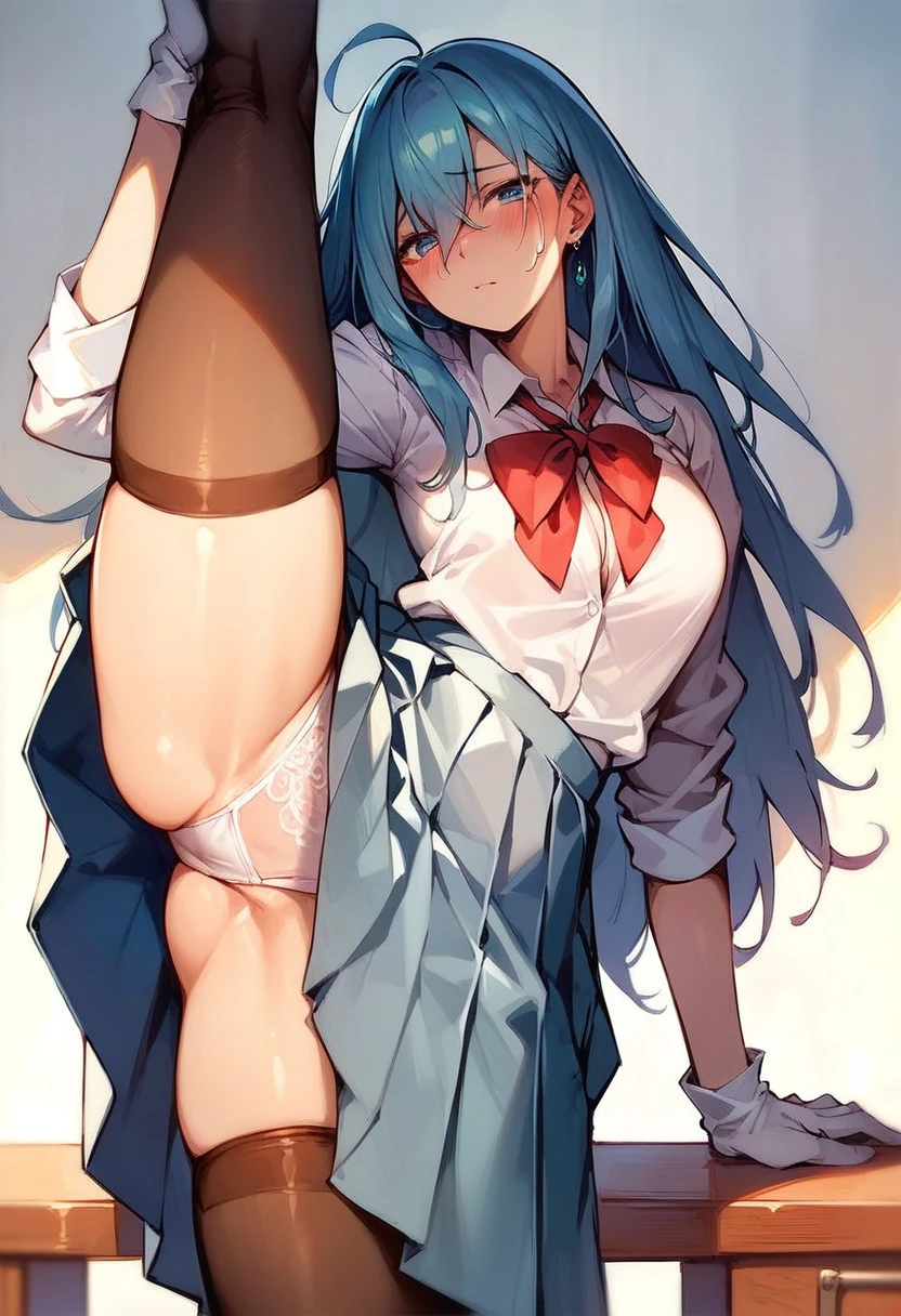 Trigger:vivy,1girl,long hair,bangs,blue eyes,hair between eyes,blue hair,earrings,ahoge