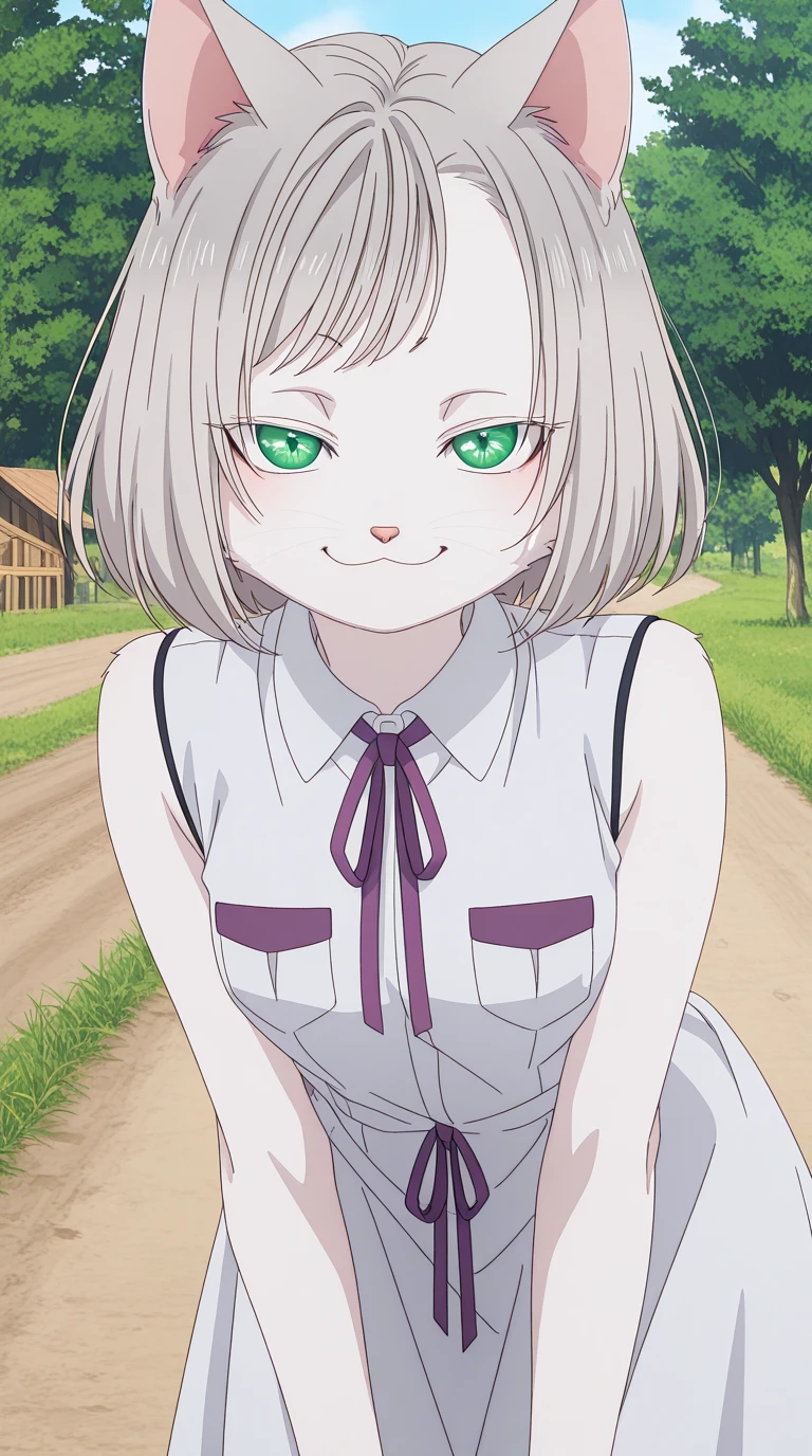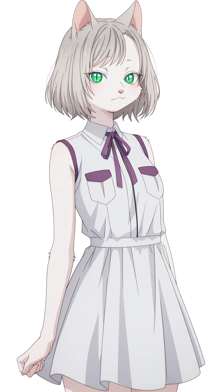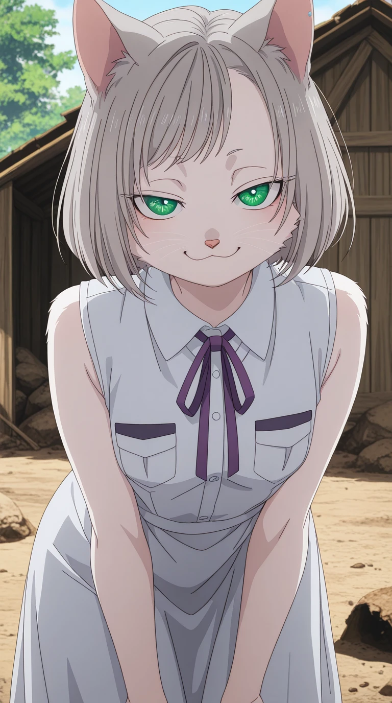 kisara, short hair, animal ears, green eyes, grey hair, cat ears, cat girl, furry, furry female, whiskers, mature female, small breasts, anime screencap
