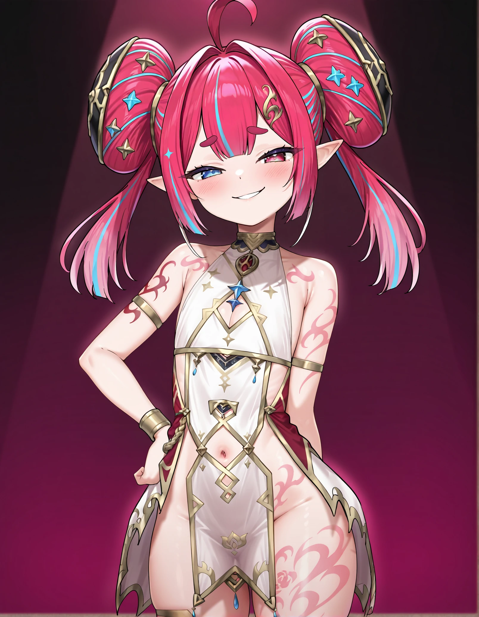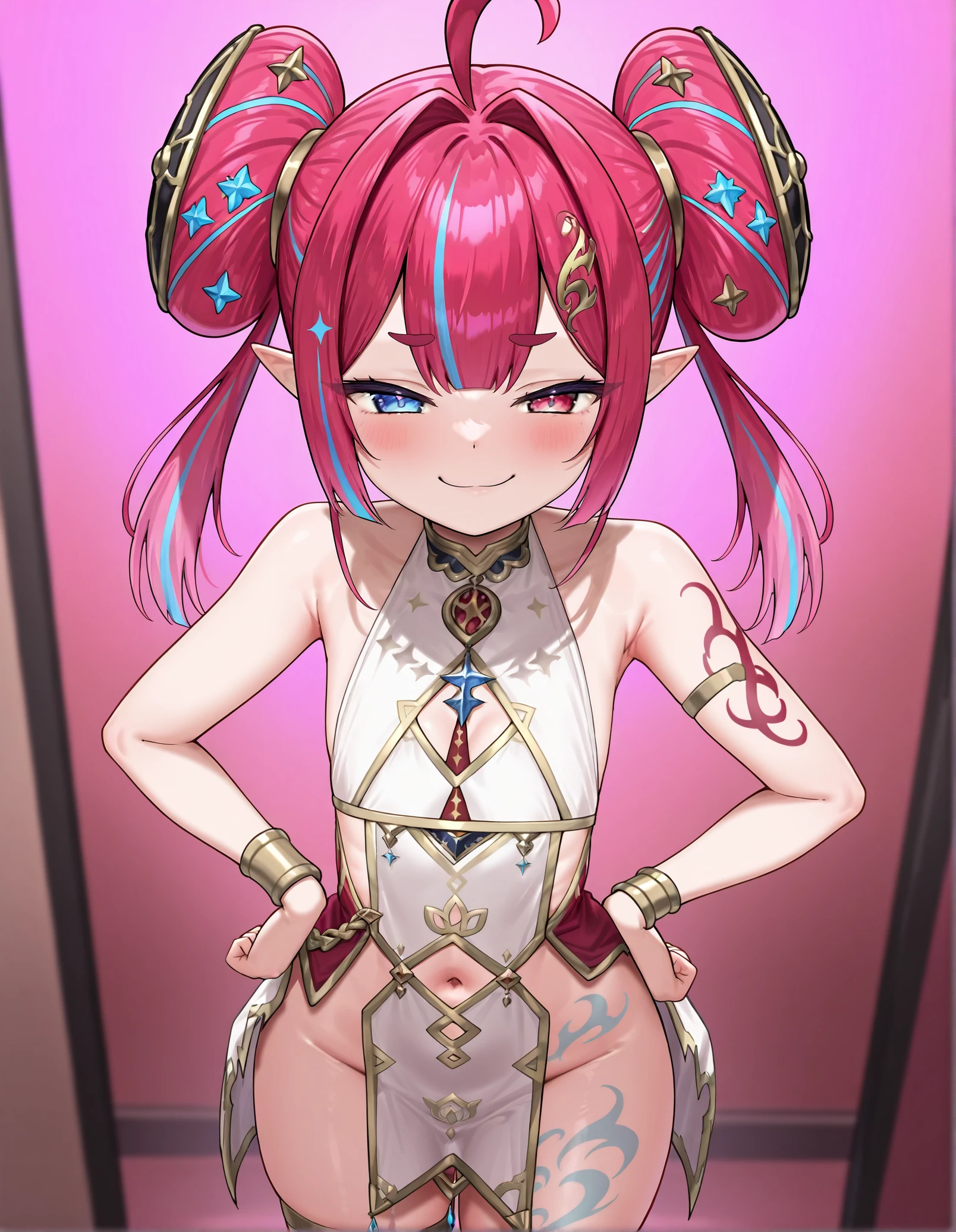 meraalphainisu, flat chest, tattoo, heterochromia,