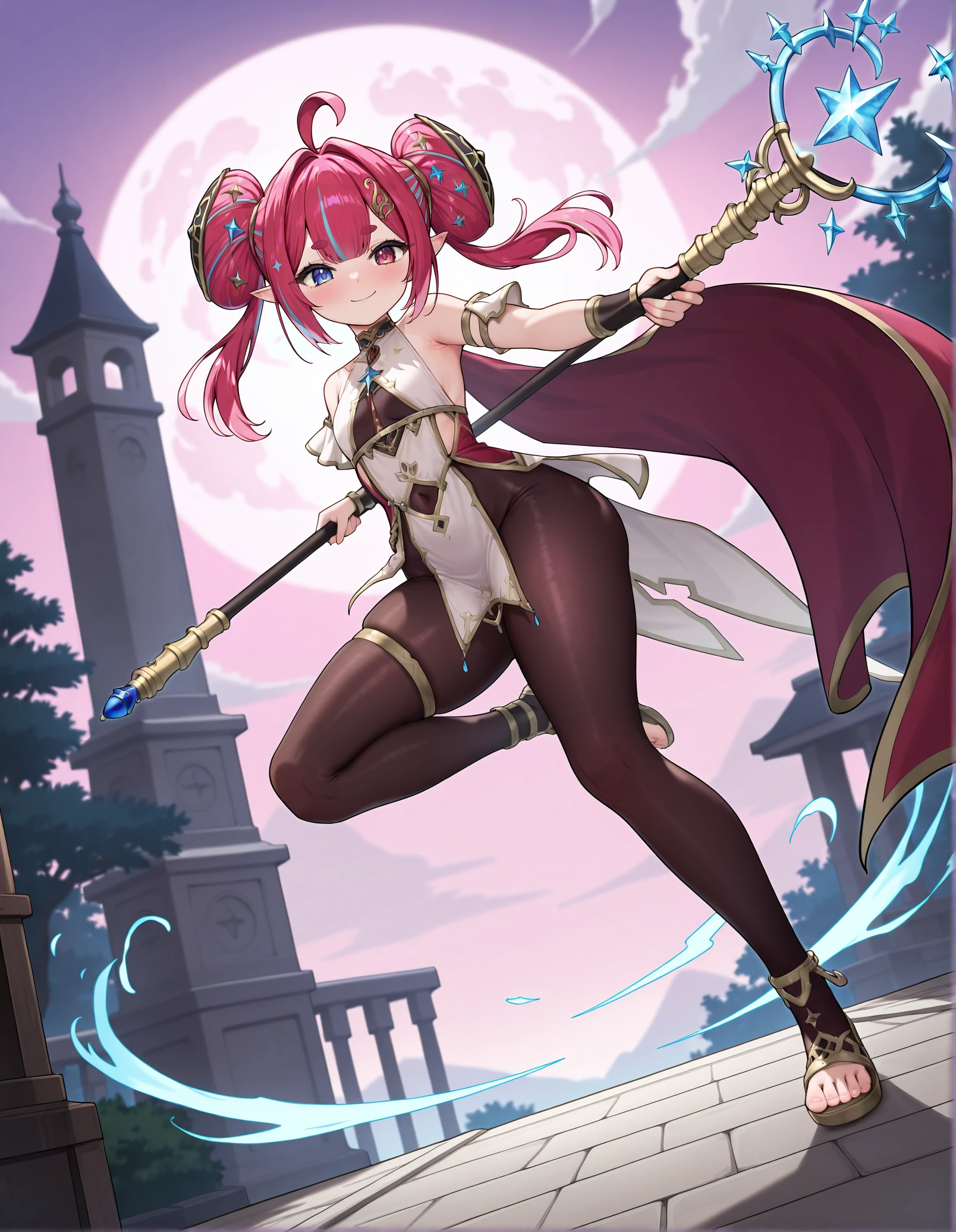 pantyhose, holding staff,