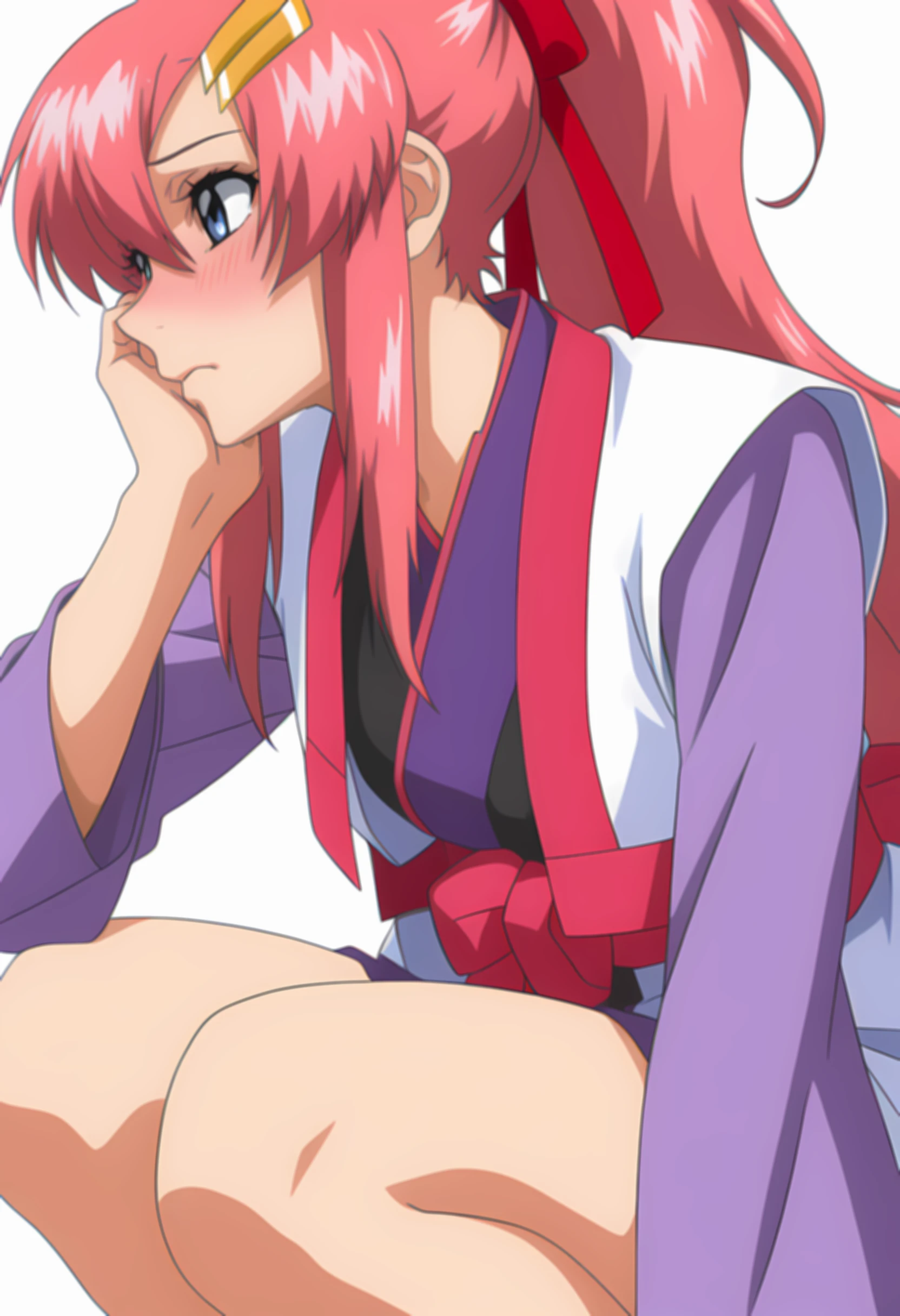 , japanese clothes, hair ribbon, sidelocks, kimono, red ribbon, hairclip, long sleeves, high ponytail, wide ponytail, bow, hair bow, sash, , red bow,kimono,purple sleeves