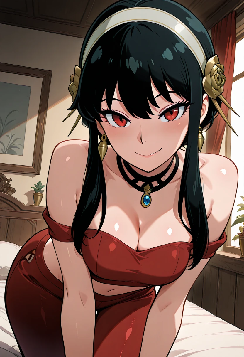 zzYor, red eyes, black hair, short hair with long locks, sidelocks,