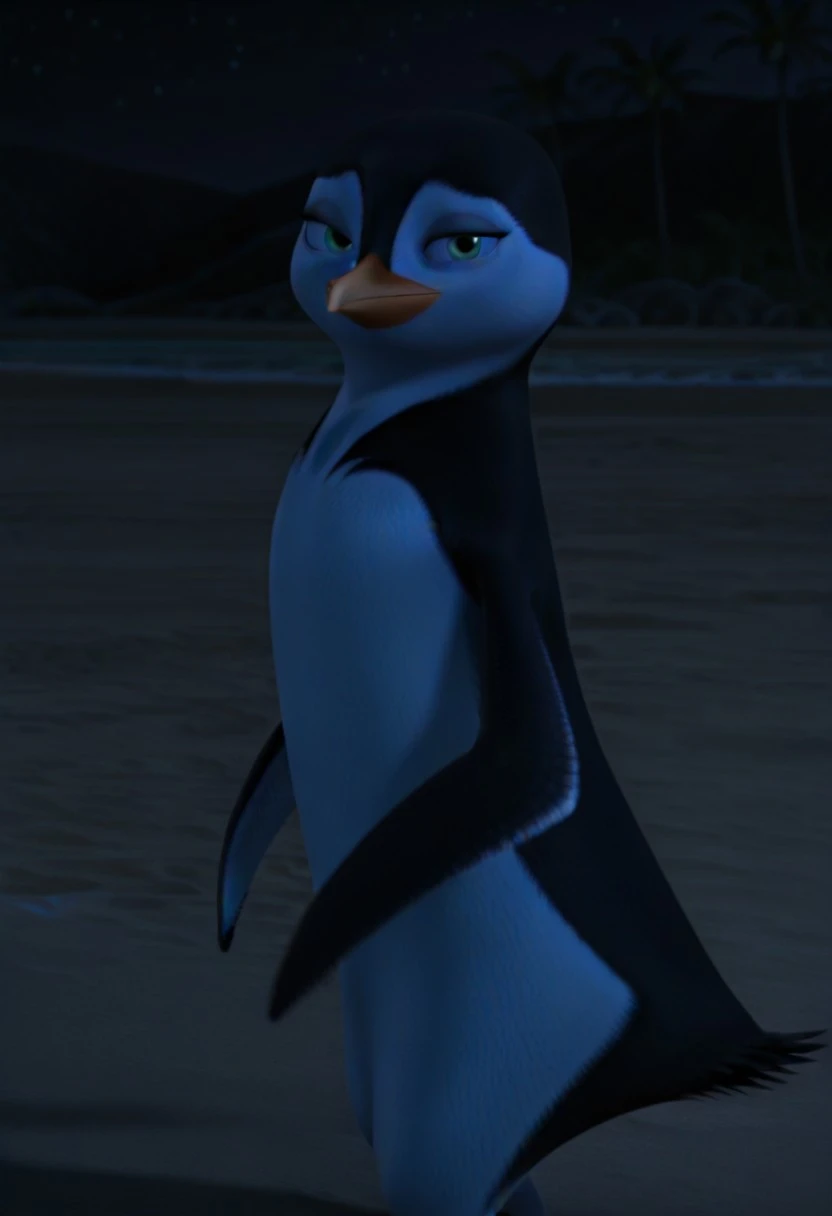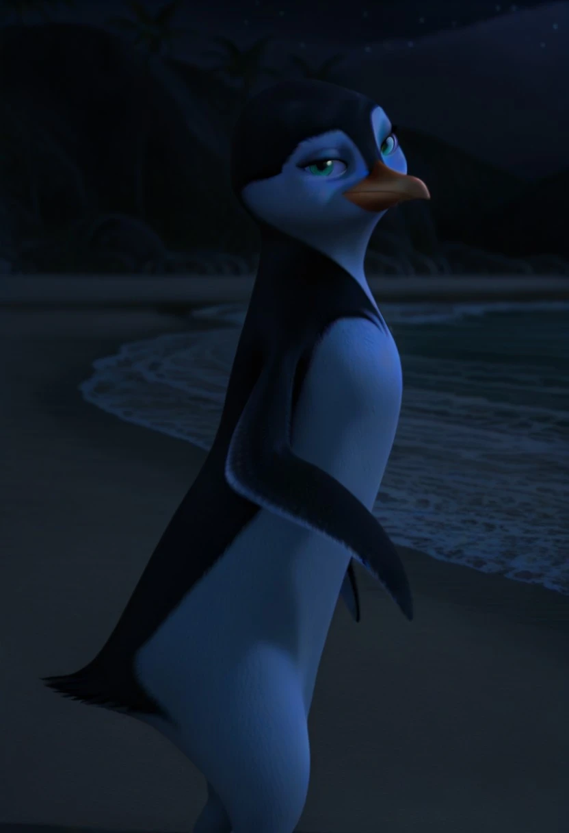 LaniP, penguin, 3D, realistic, beak, white and black body, teal eyes, arm fins, short legs, female, no humans,