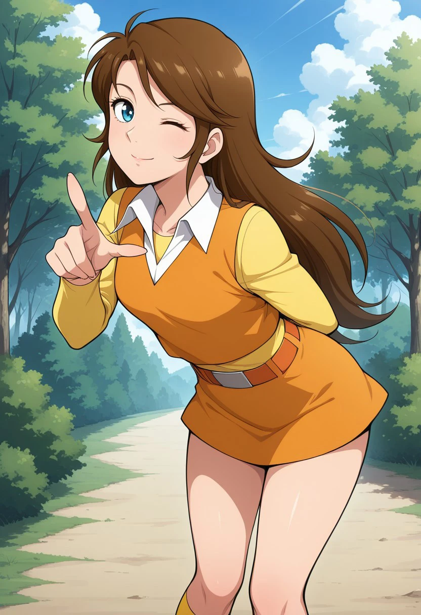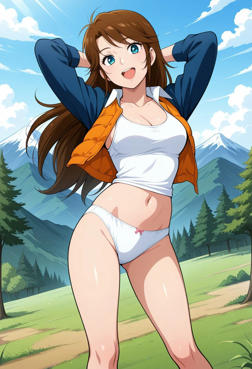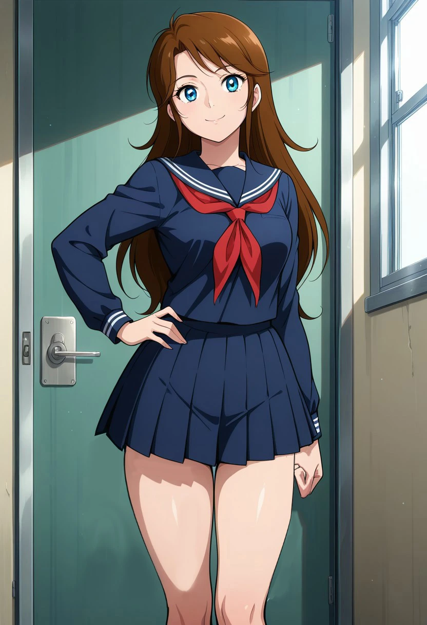 masterpiece, best quality, perfect anatomy,amazing quality, anime screencap, 1girl, Mari Sakurano,brown_hair,long hair,blue eyes,medium breasts,