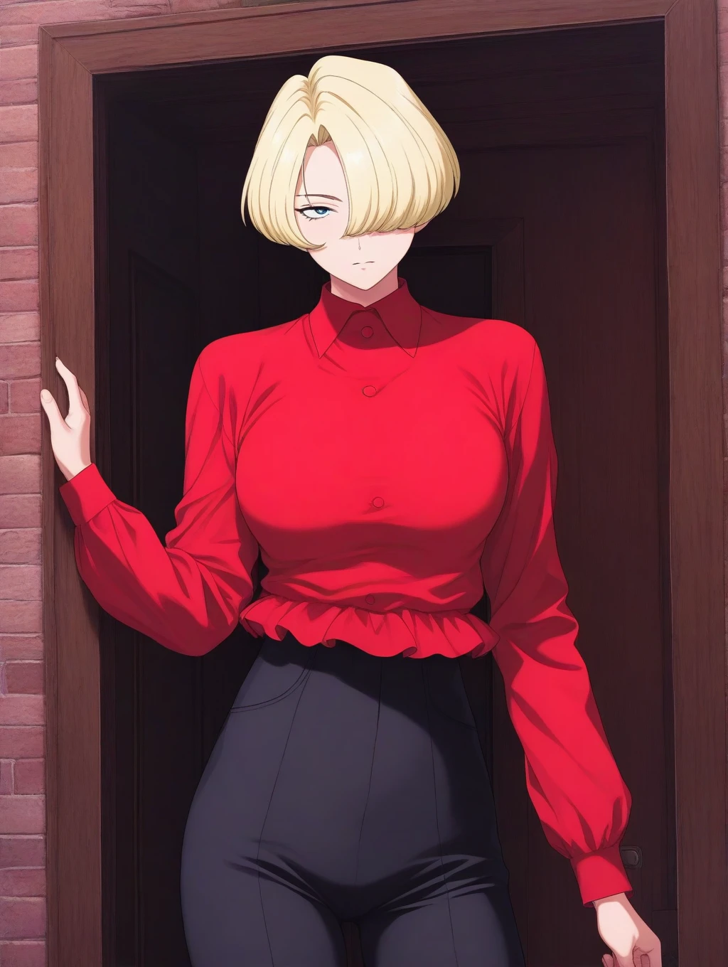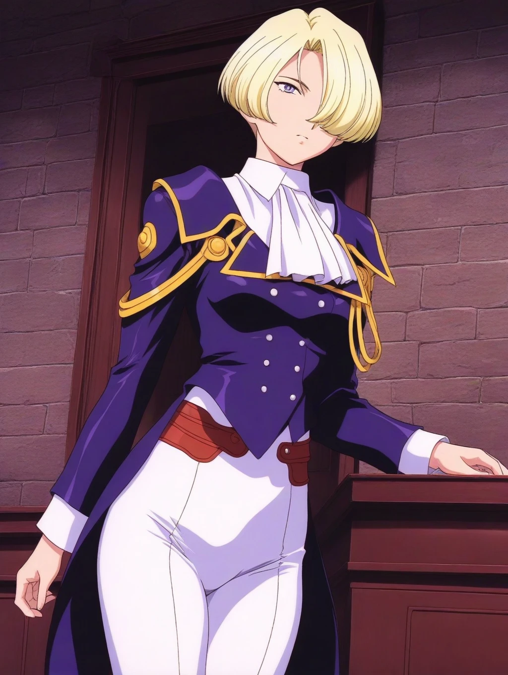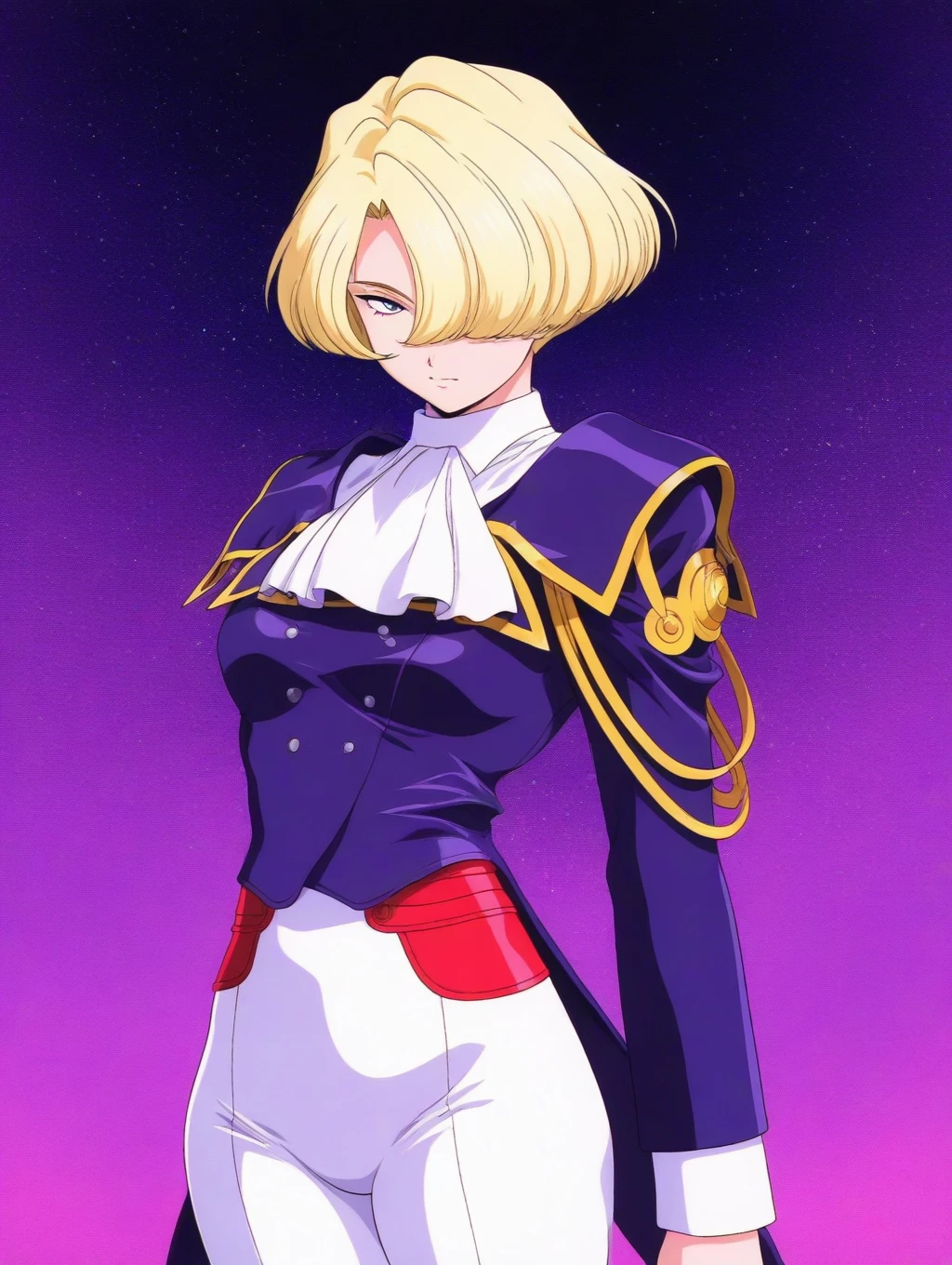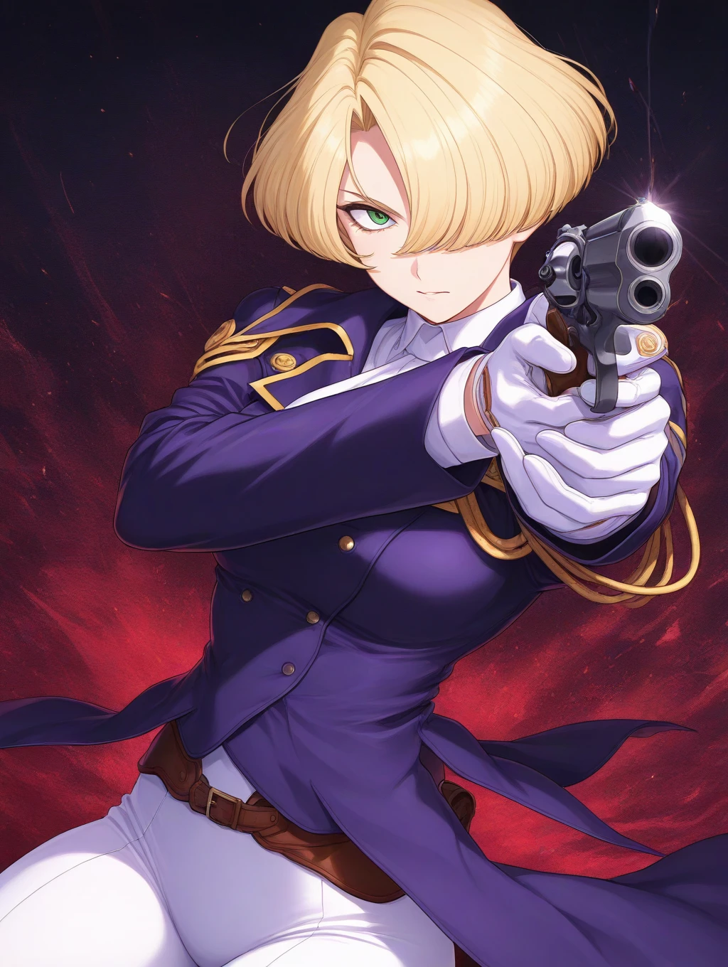 通用:green eyes,blonde hair, short hair, hair over one eye,