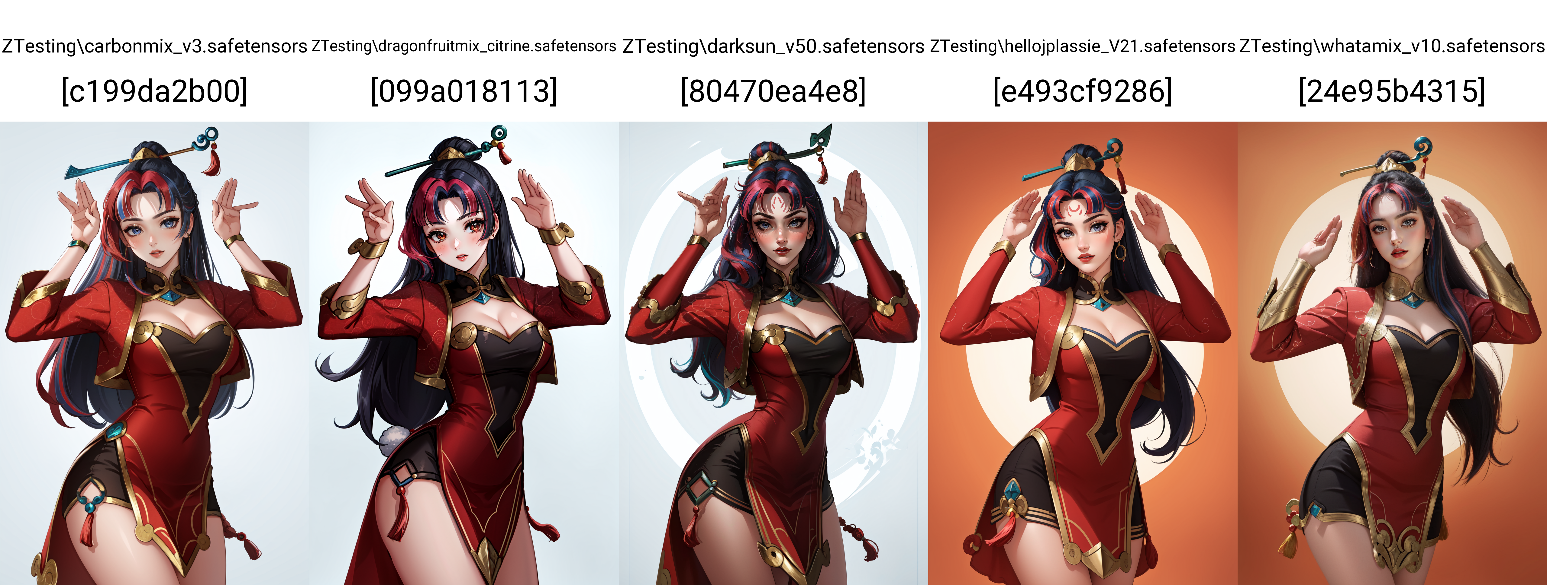 VAE: vae-ft-mse-840000-ema-pruned (for realistic models & 2,5D), kl-f8-anime2, blessed2.vae (for anime models)
