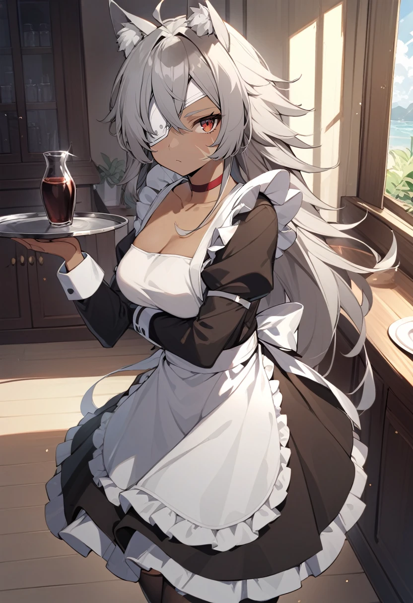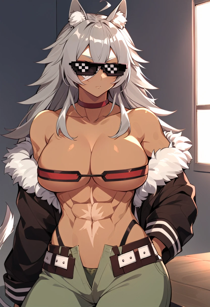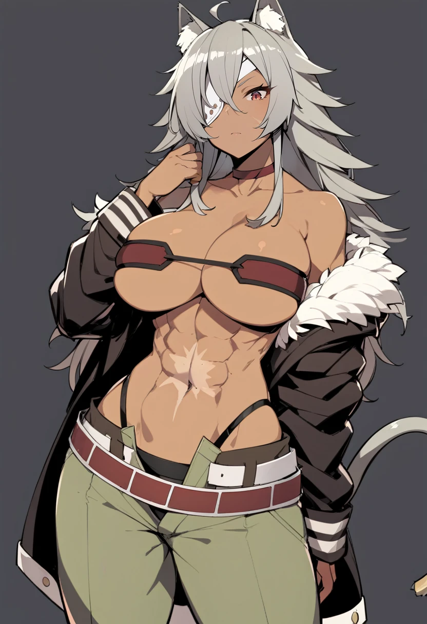 ghislainedef, dark skin, scar, abs, eyepatch, tail