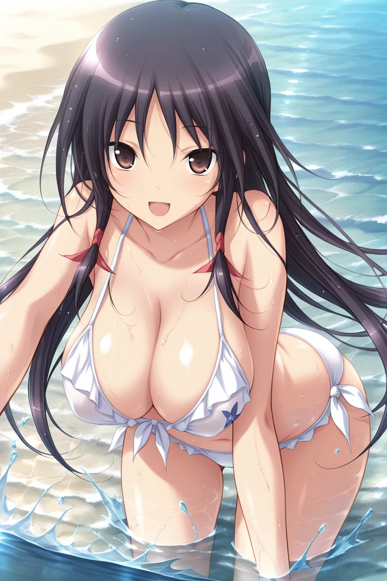 black hair, long hair, bangs, side locks, hair between eyes, brown eyes, ,