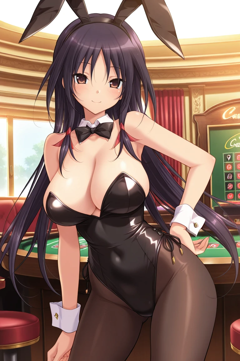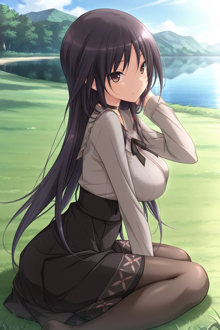iori-casual, black choker, grey shirt, black skirt, pantyhose,