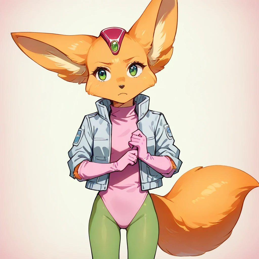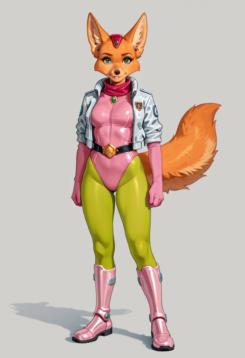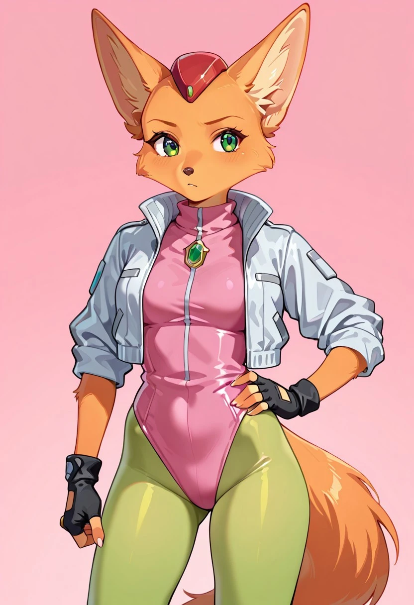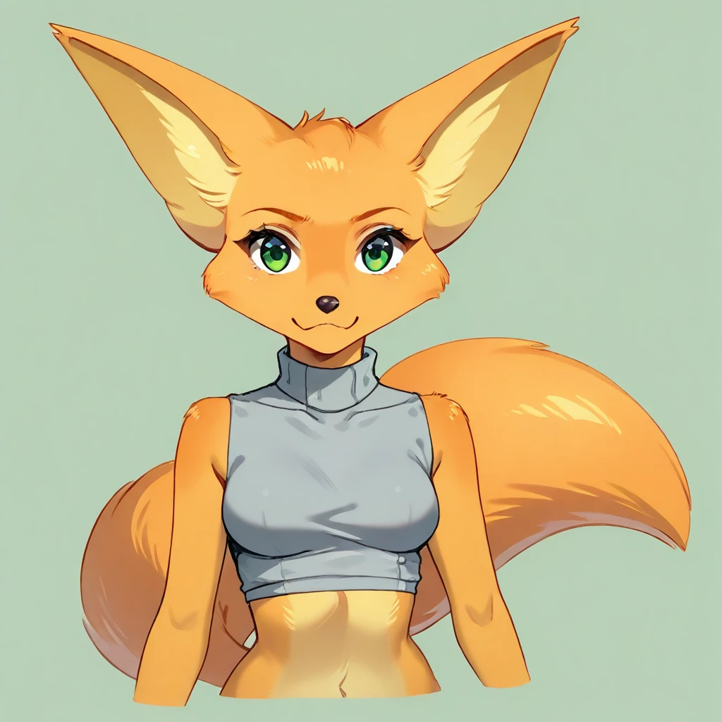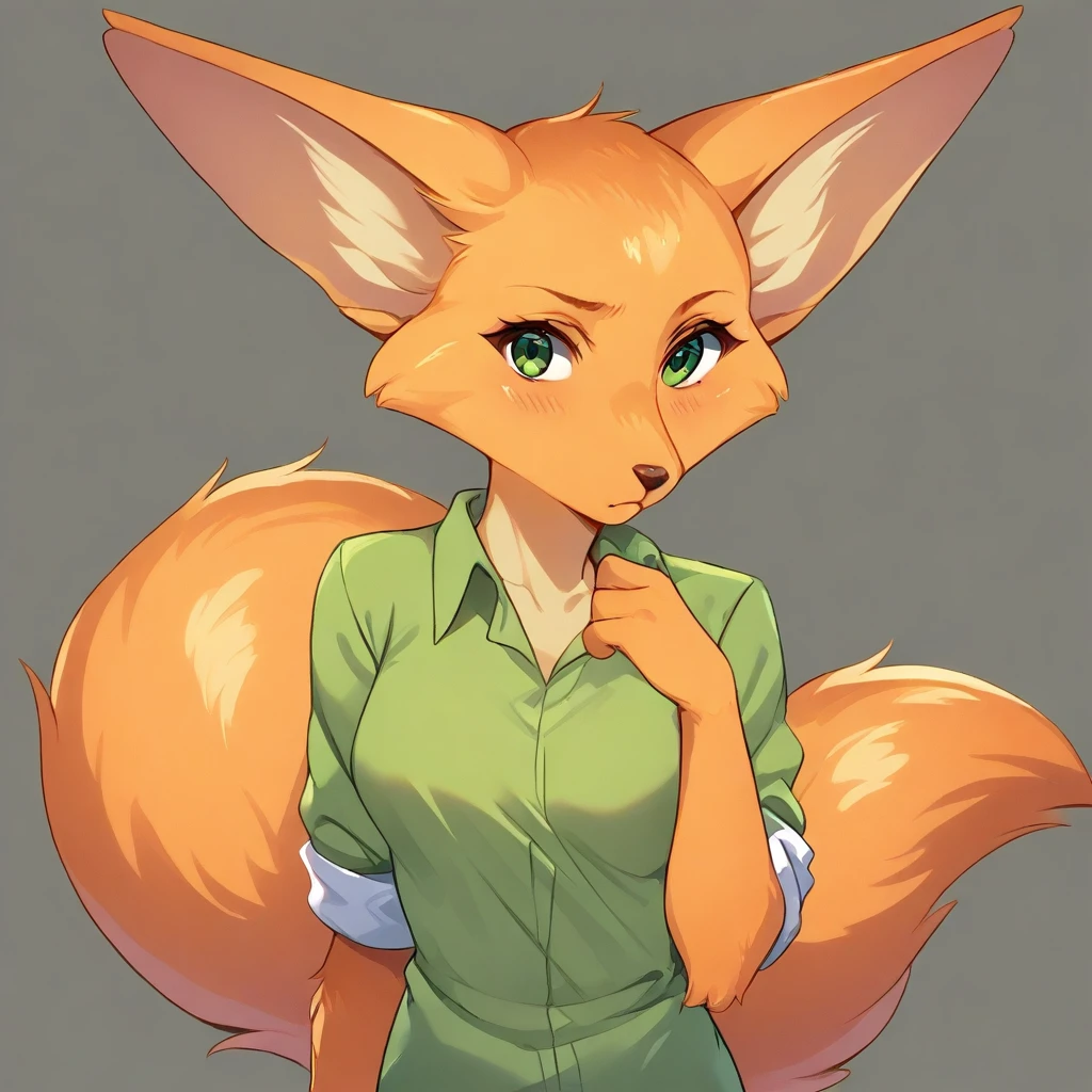 F4R4-SF, anthro Fox, orange fur, green eyes, fluffy orange tail, femaleBase Clothing :
