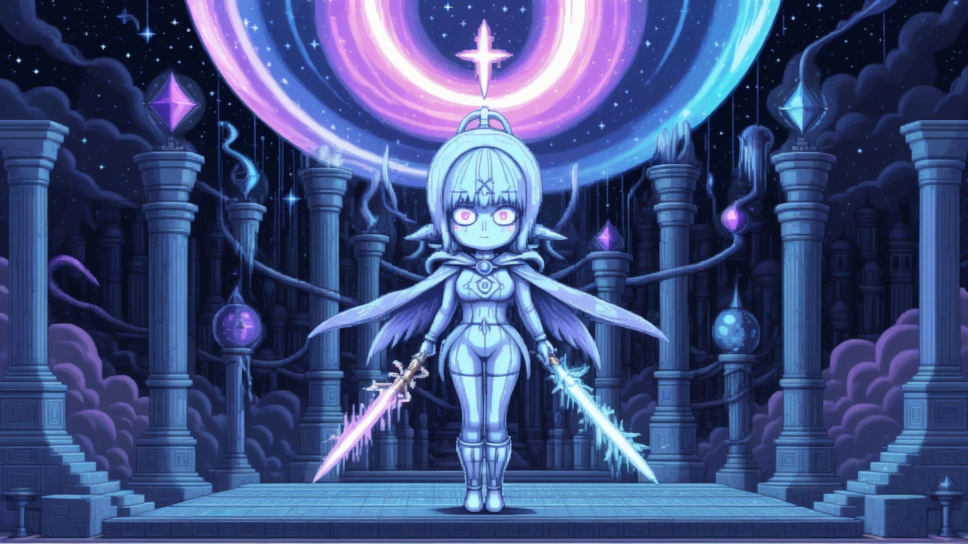PiXXXL is an enigmatic pixel art style that resists conventional descriptions. Its artist remains shrouded in mystery, not due to anonymity, but because their identity has slipped from my memory and is lost to eternity. Imagine this unique style as a mesmerizing portrayal of busty women pole dancing within a digital simulation of love and hate spiraling upwards towards celestial heights. It's a masterful fusion of diverse elements, encapsulated within the contemplative gaze of a joyous kitten resting in a window sill, creating a visual experience that defies all definition.