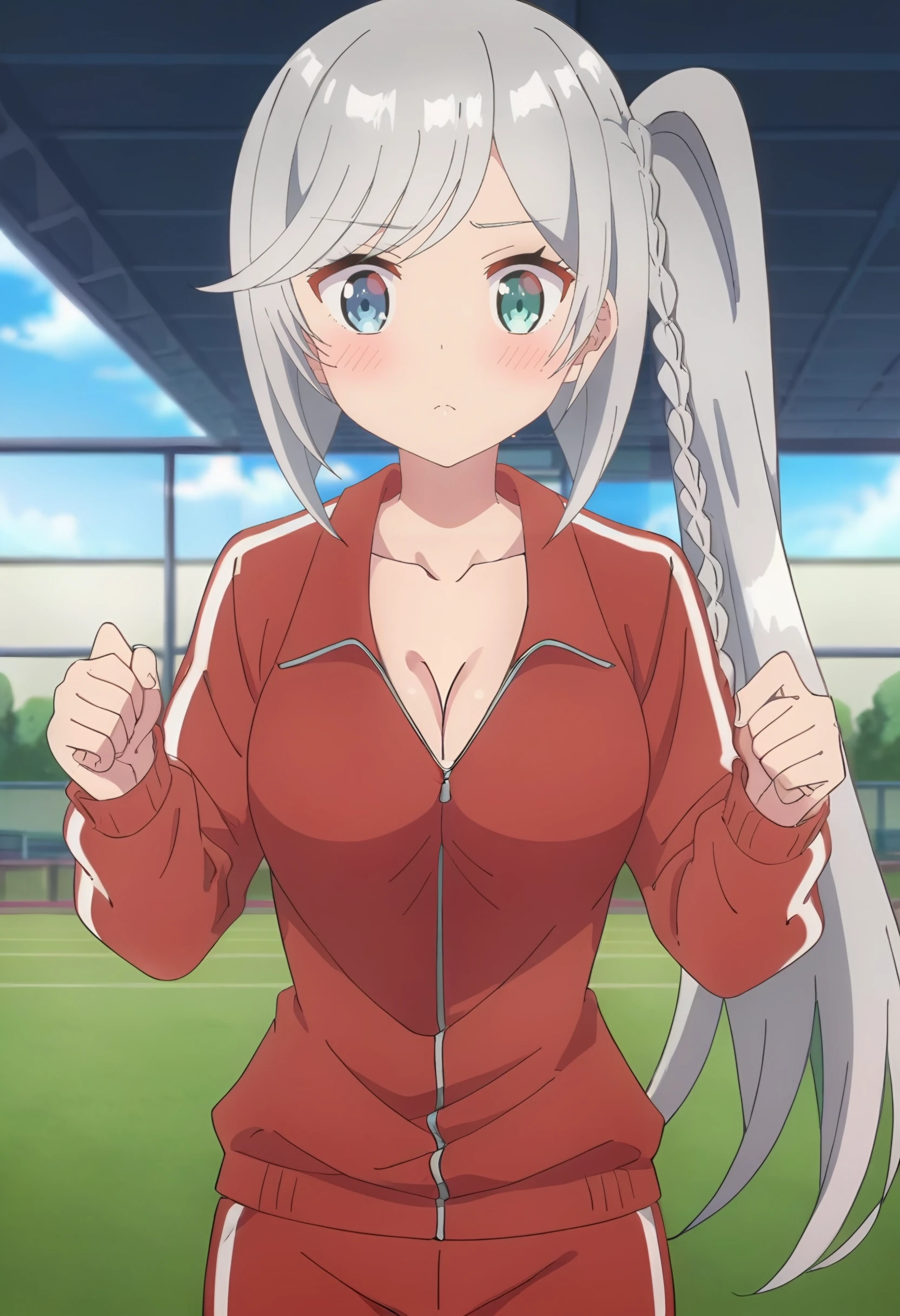 outfit 2 : red_jacket, track_jacket, track_suit, cleavage,
