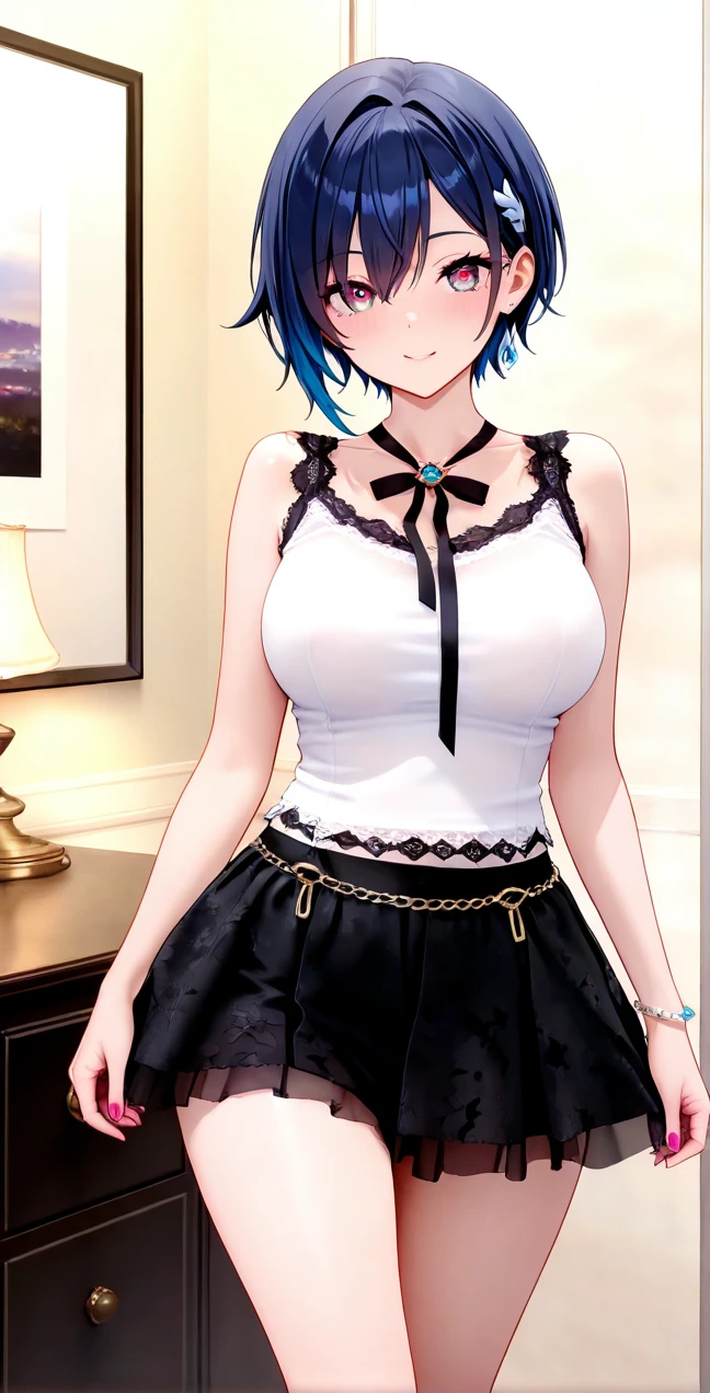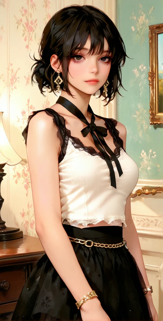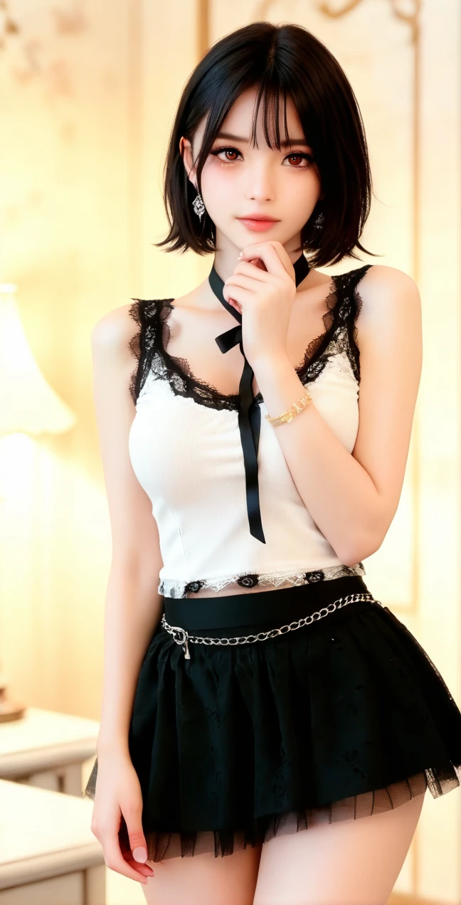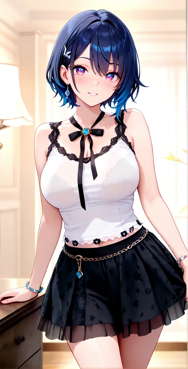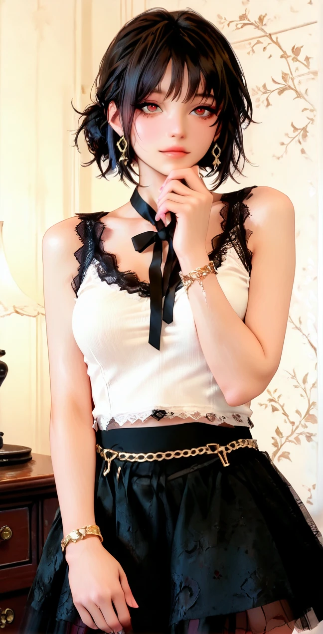 camisole_s, skirt, black skirt, jewelry, bracelet