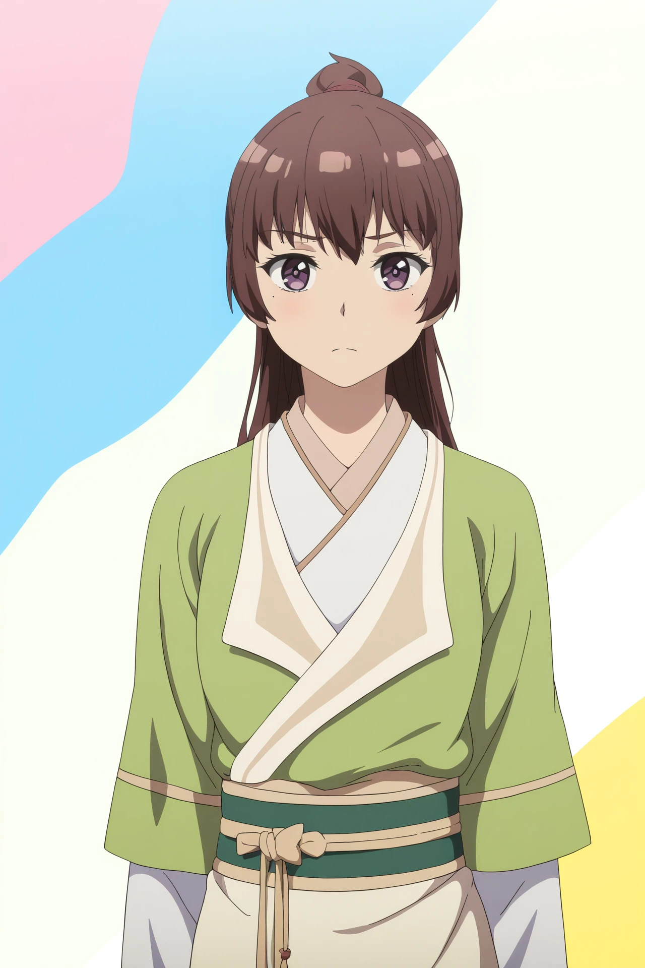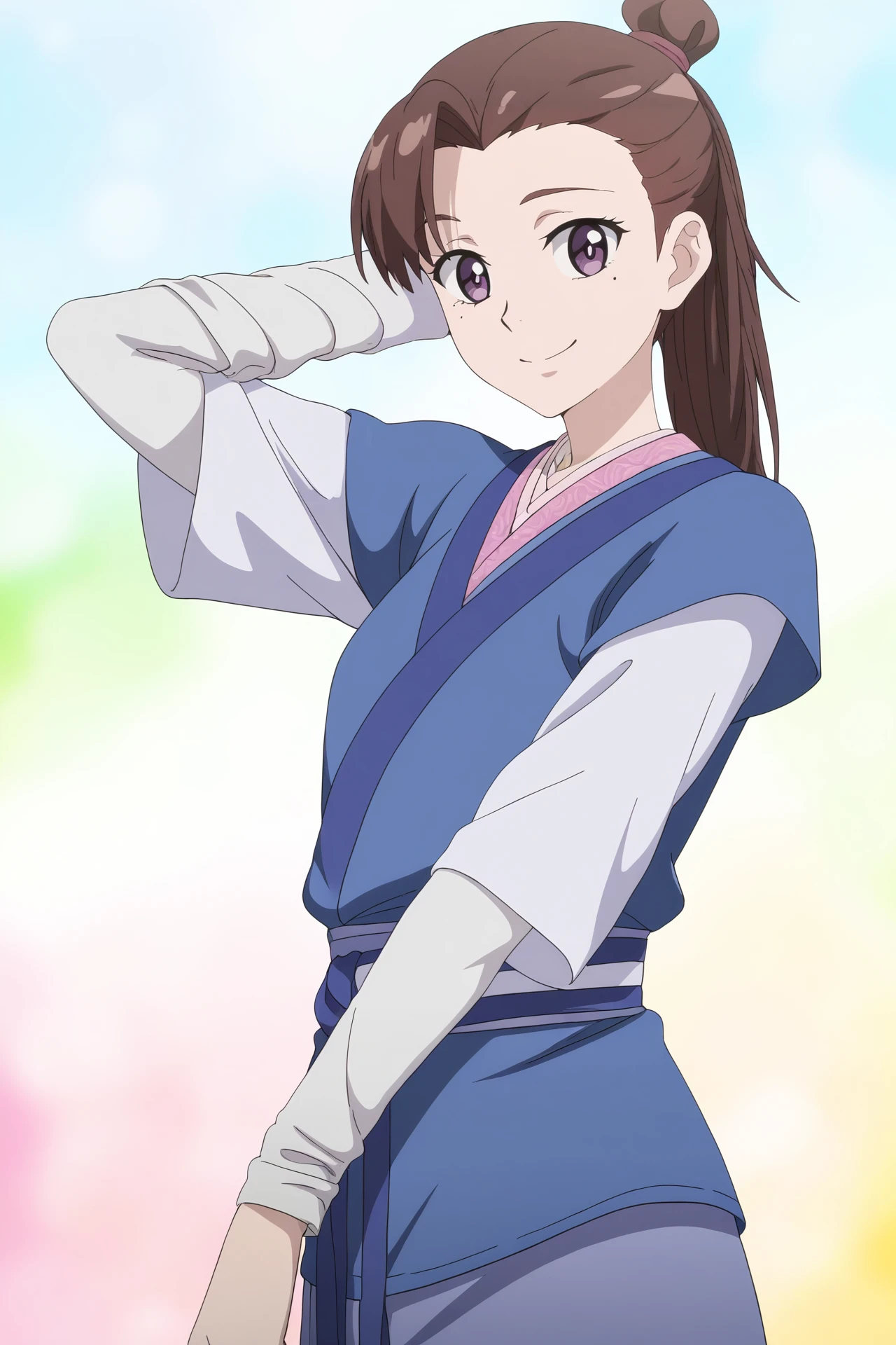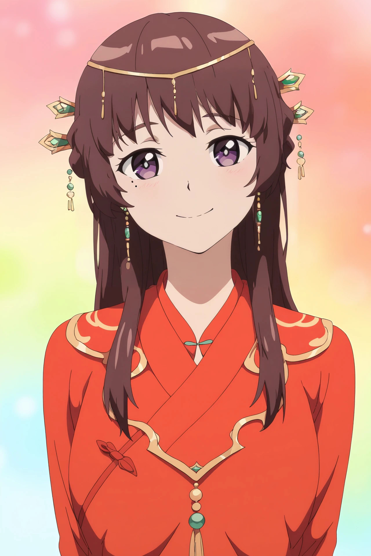 1girl,solo,YeJinXuan,brown hair,purple eyes,mole under eye,long hair
