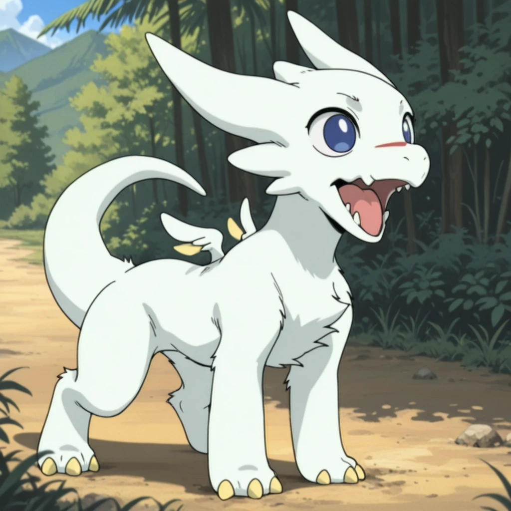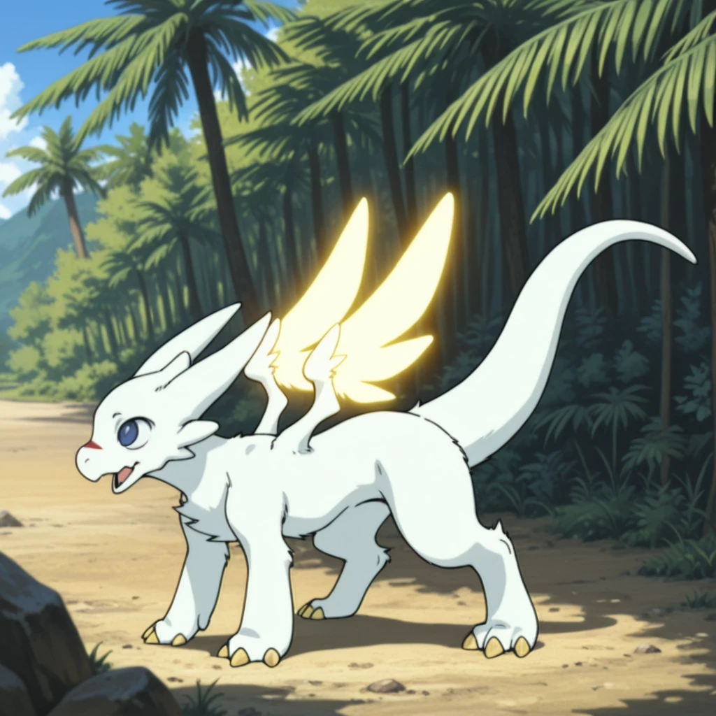 ChibiDDil, feral, male, furry dragon, white fur, blue eyes, small wings