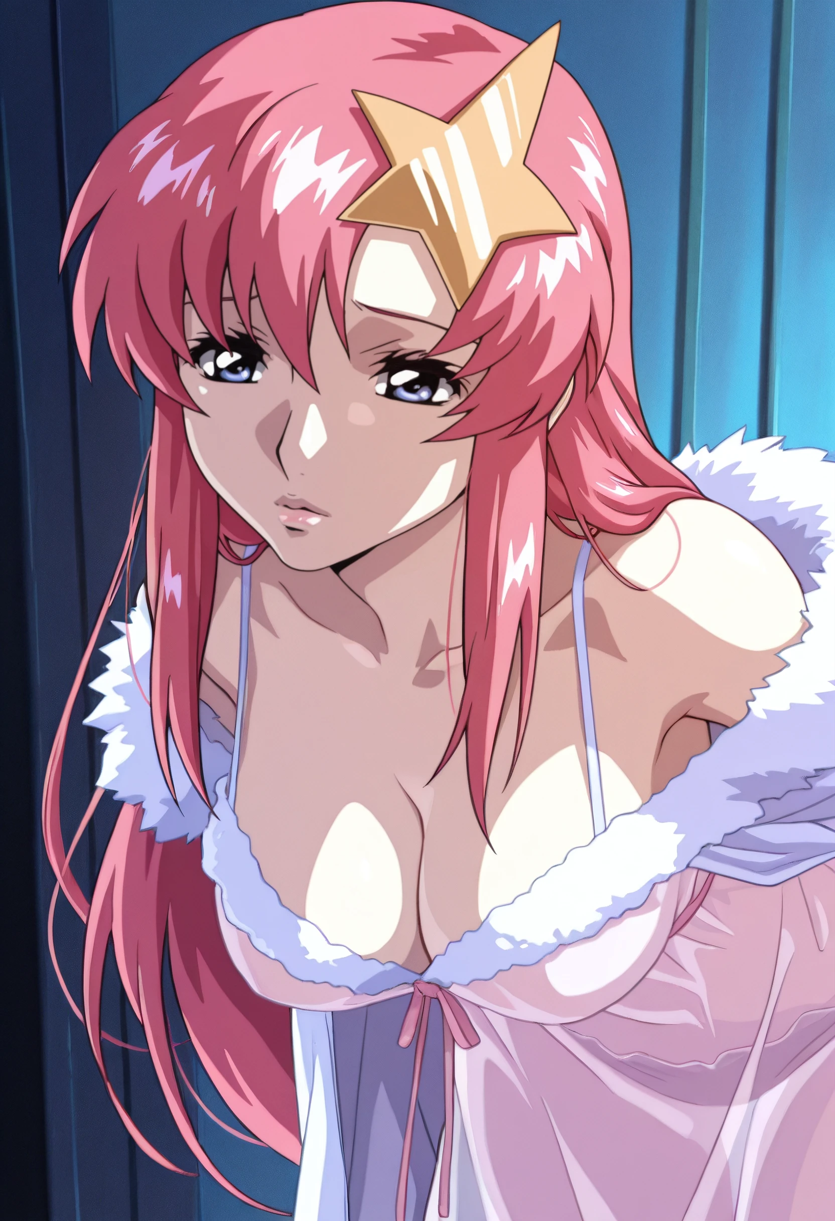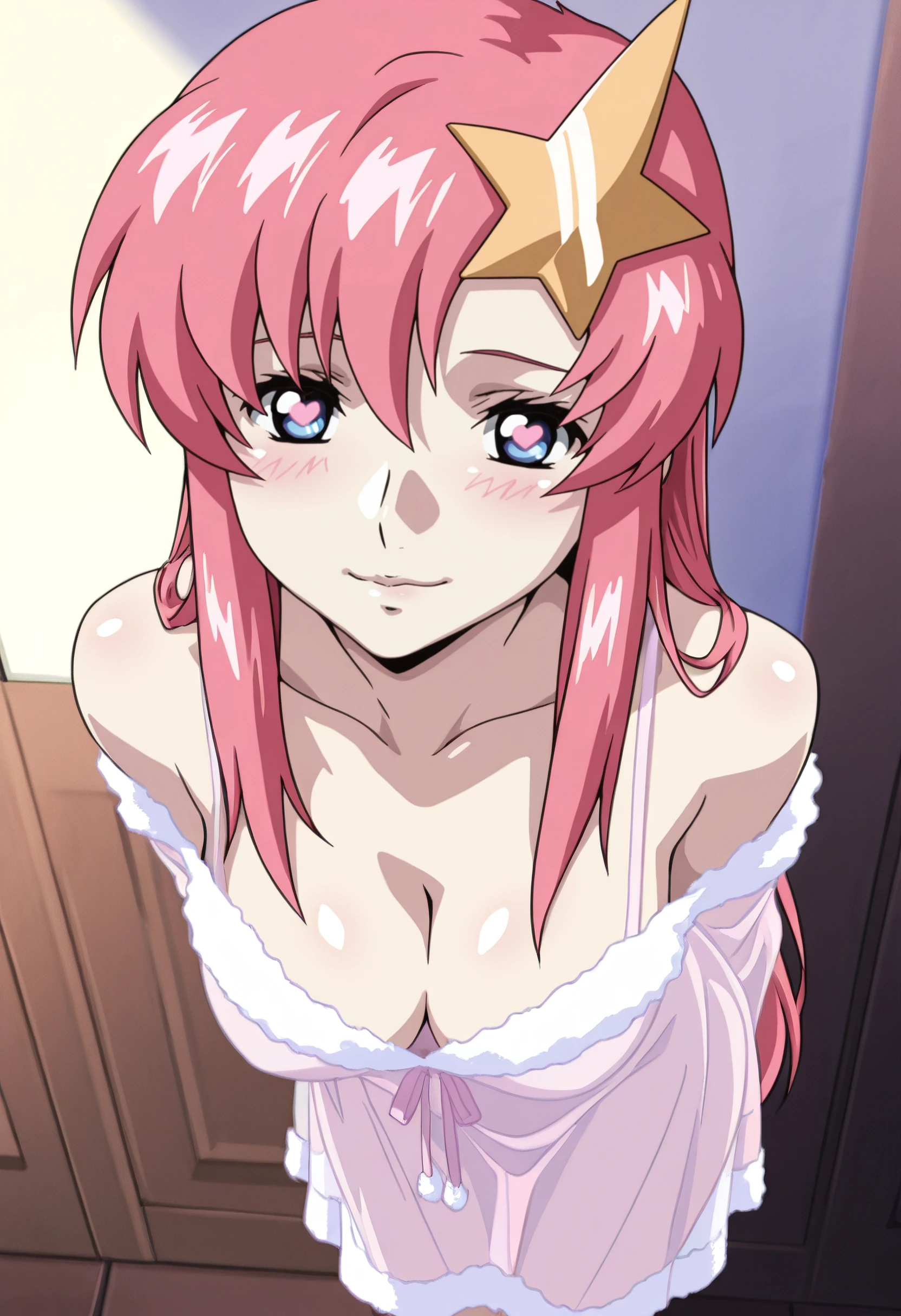GSDMeer, long hair, hair ornament, pink hair, star hair ornament, blue eyes,