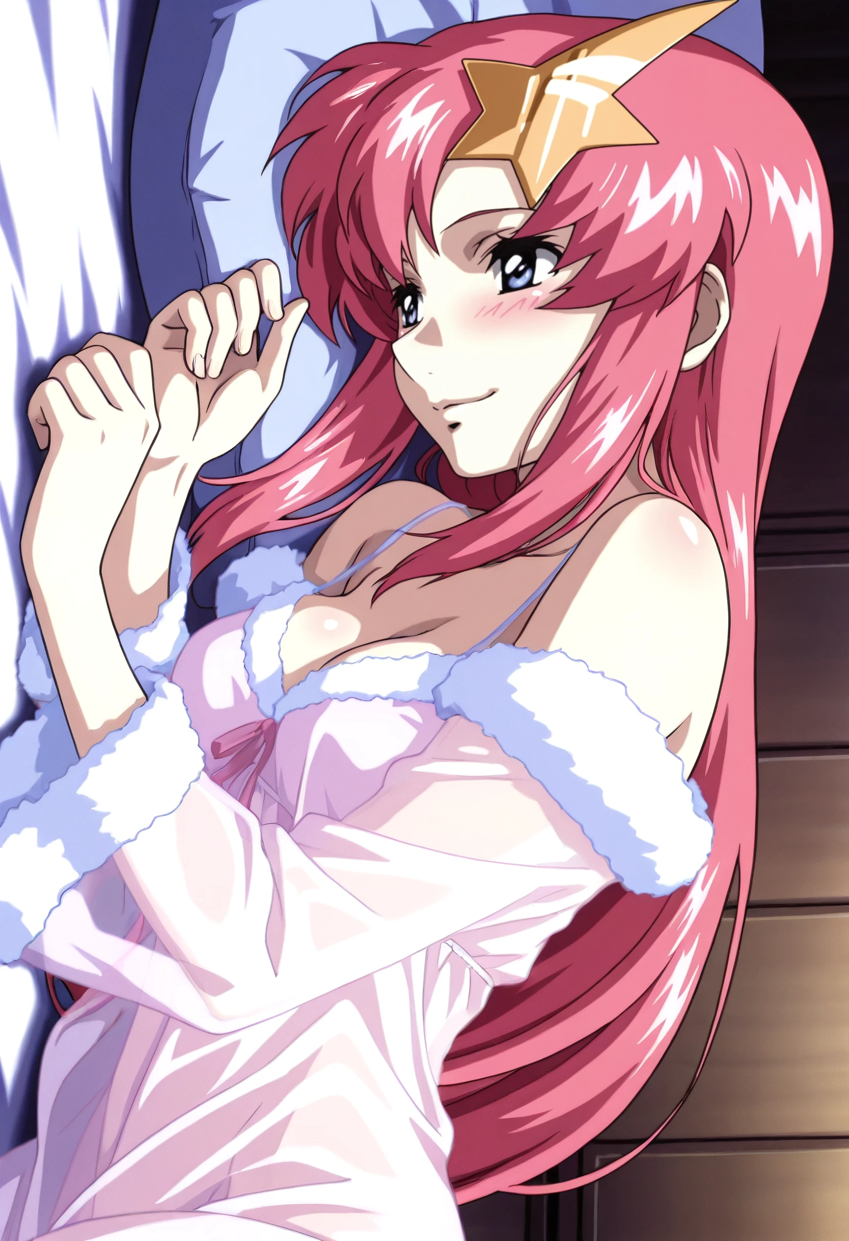 MeerSleepwear, nightgown, see-through clothes, lingerie, camisole, chemise, spaghetti strap, negligee, cleavage, white nightgown, sidelocks, pink camisole, bare shoulders, underwear, sleepwear, fur trim,