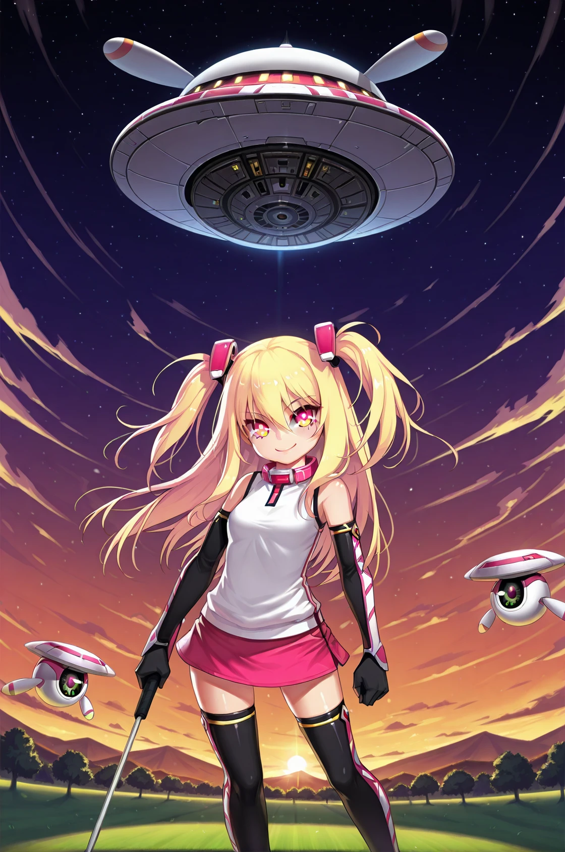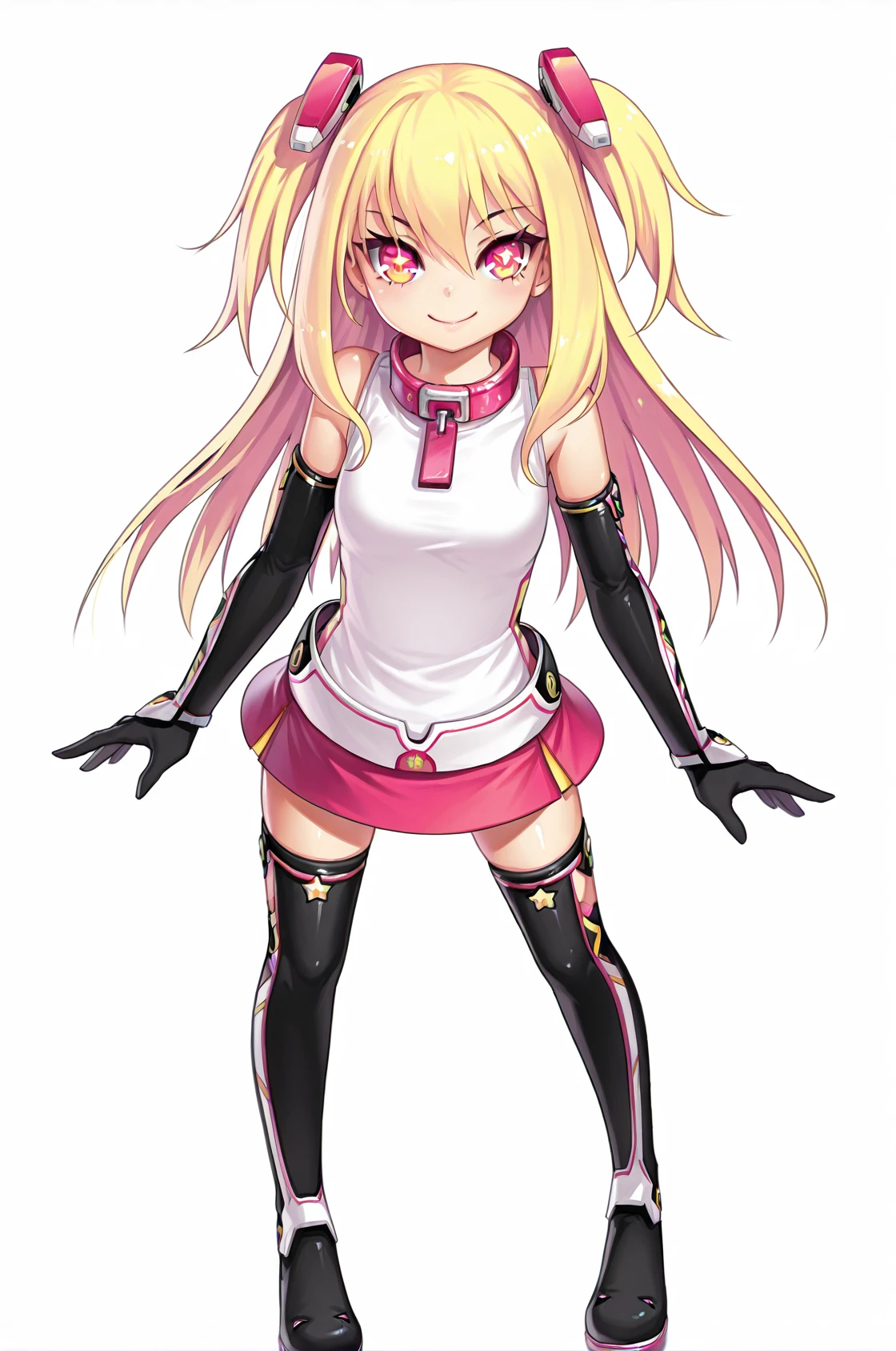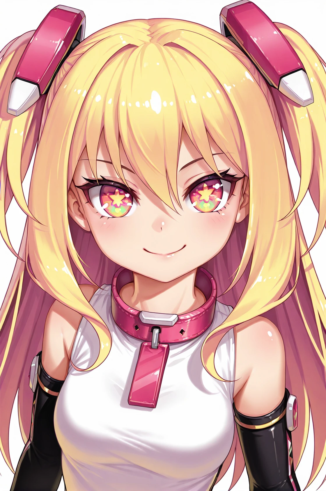 prompt: spikaPangya, long hair, blonde hair, star-shaped pupils, multicolored eyes, twintails