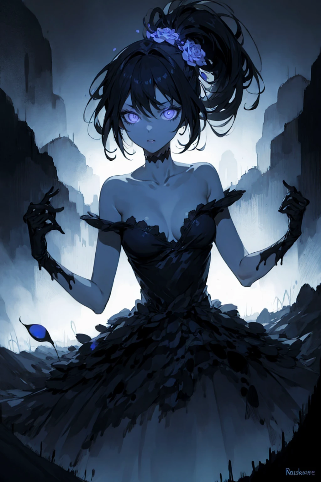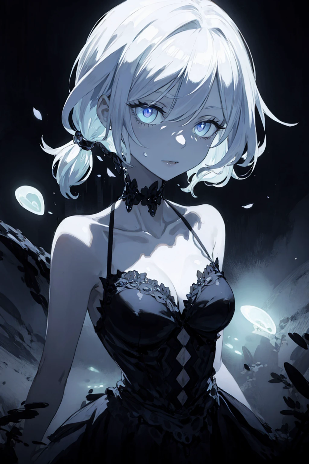 Does not require trigger word, but helping words like: bioluminescence, dark, night,darkness, cold, cold lighting, fog, glowing, can give stronger and different results.