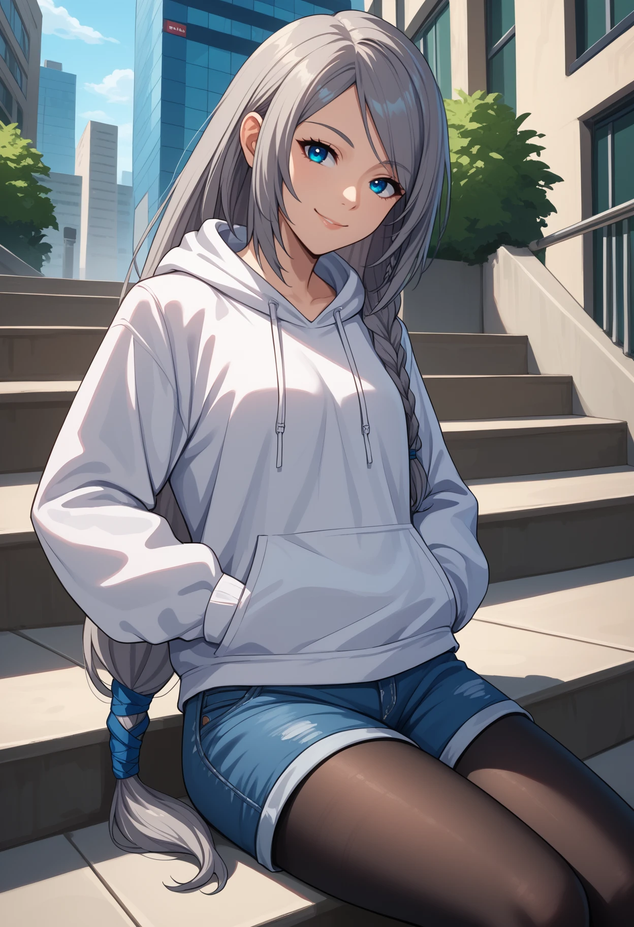 jlwrck, long hair, grey hair, single braid, side braid, blue eyes