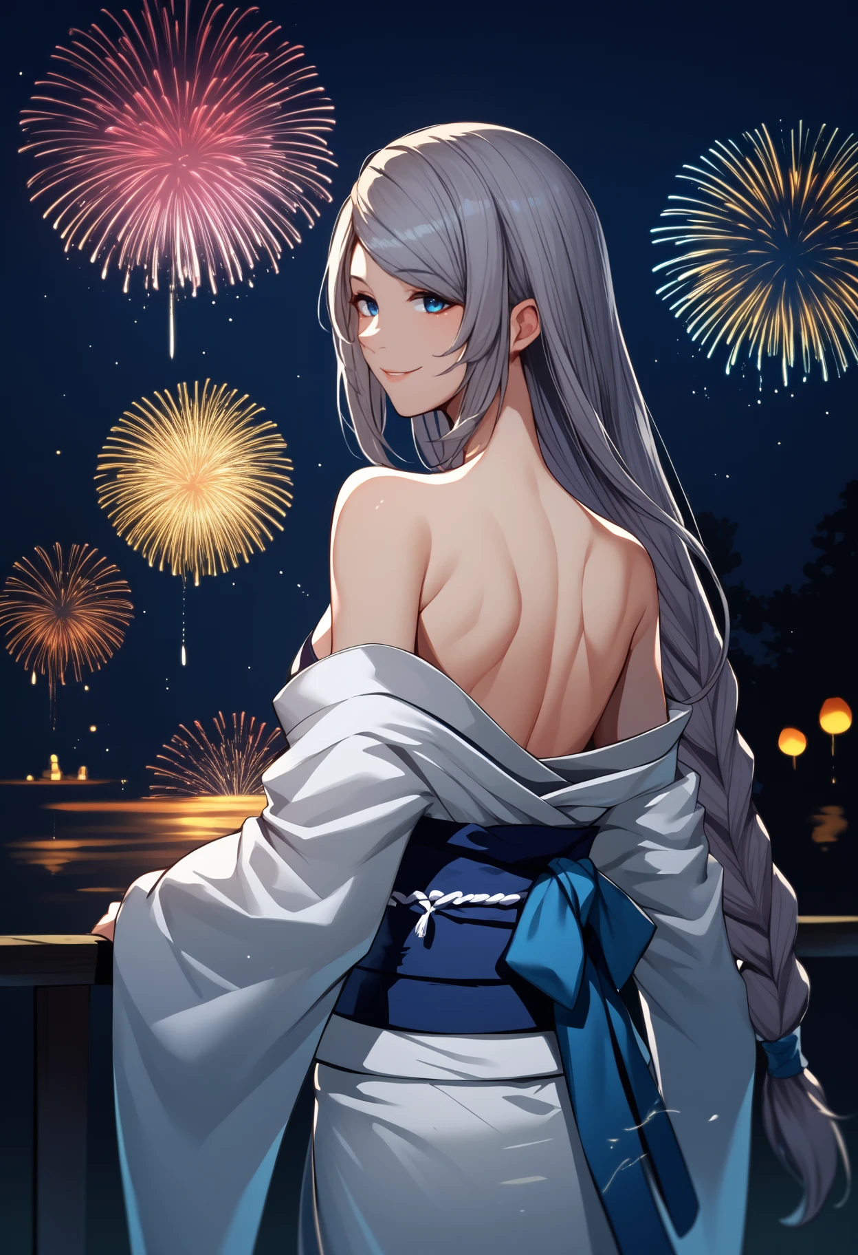 Trigger + Appearance: jlwrck, long hair, grey hair, single braid, side braid, blue eyes