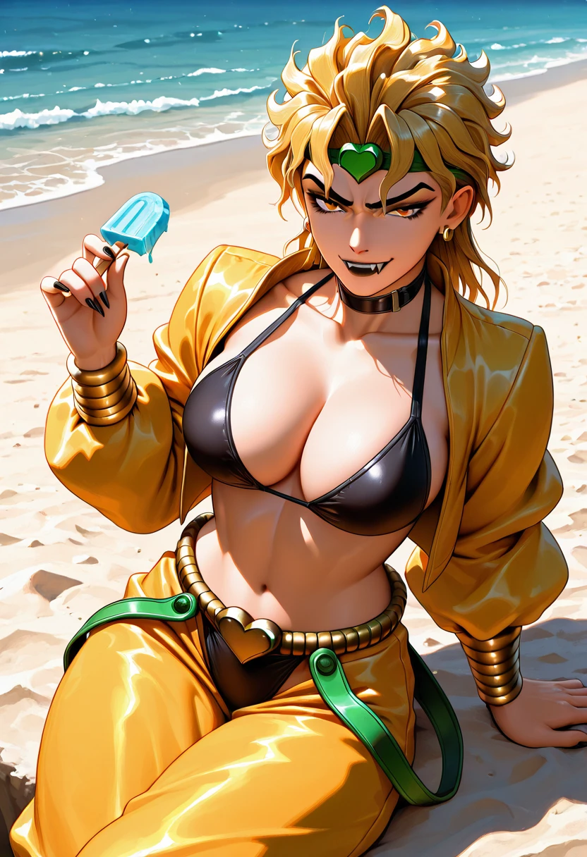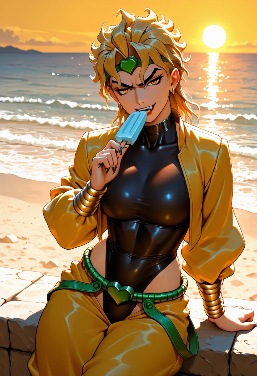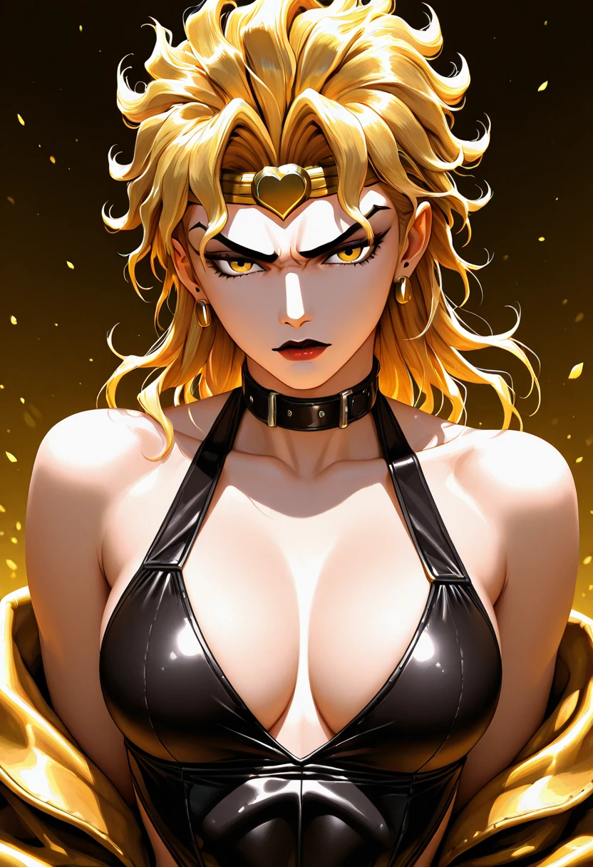 DioBrandoFR, 1girl, solo, golden, hair, yellow, eyes, dio, brando,dio brando,dio jacket,dio pants,dio belt,
