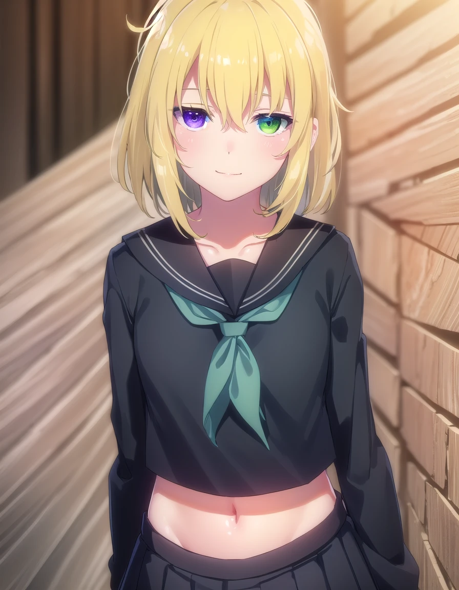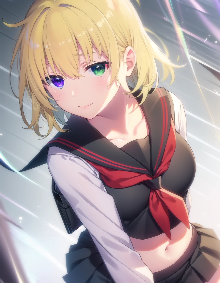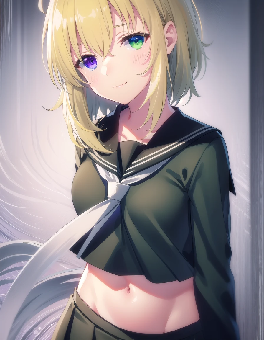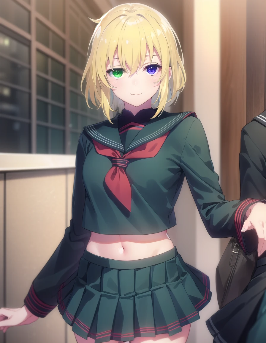 ryona, blue eyes, blonde hair, (green eyes:1.3), medium hair, (heterochromia:1.5),
