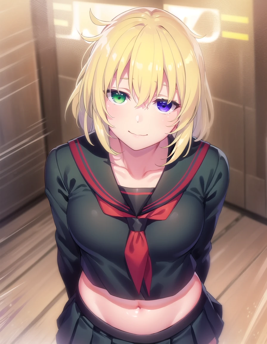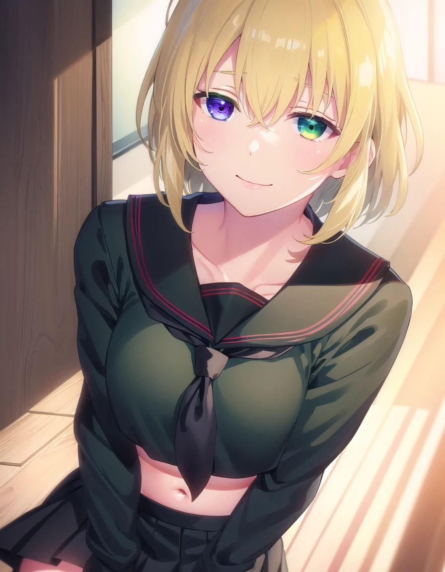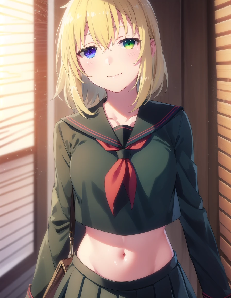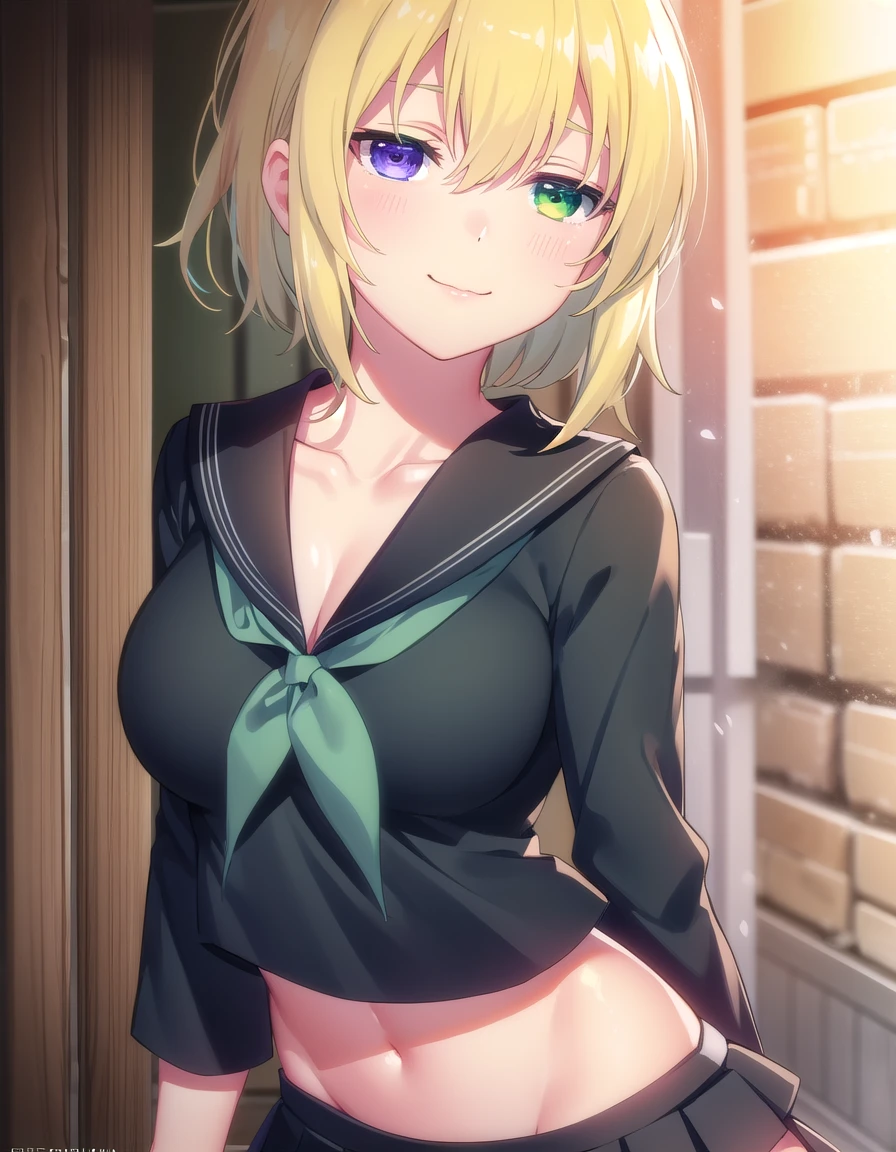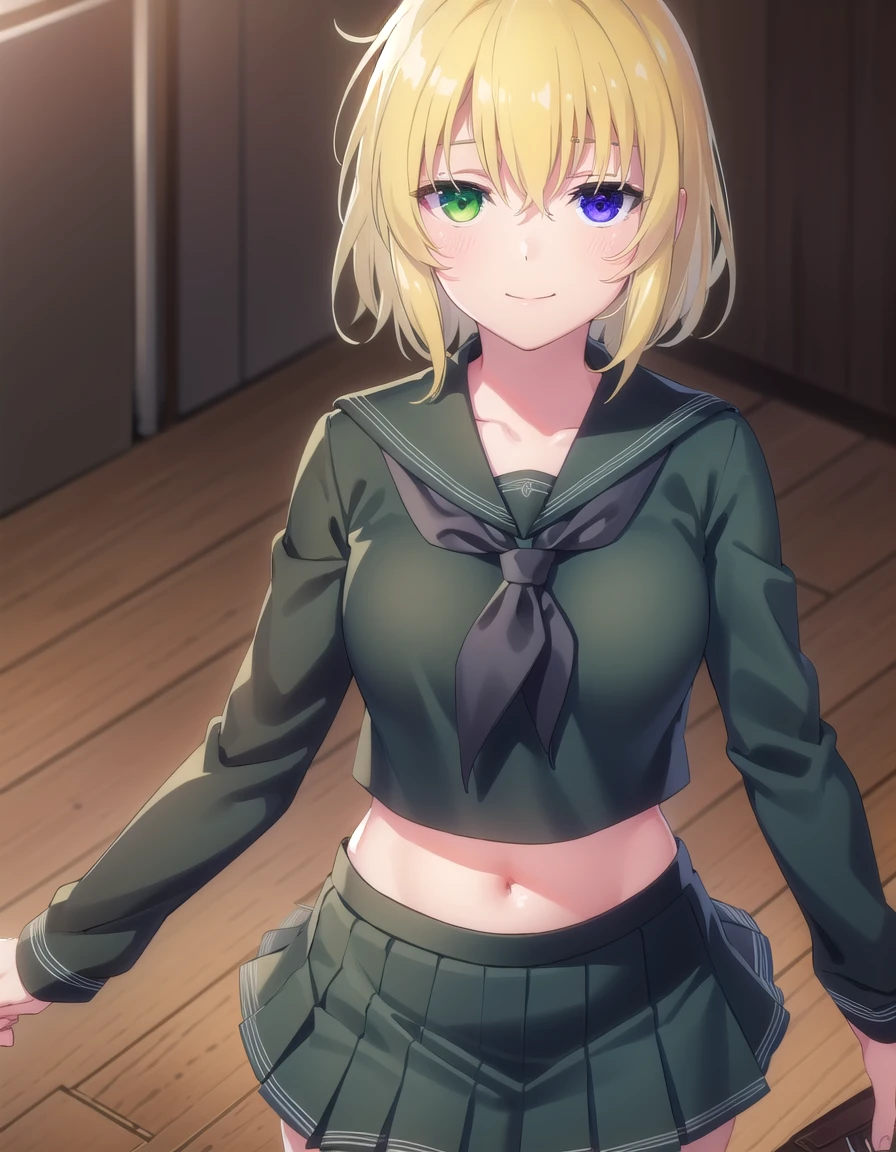 ryona, blue eyes, blonde hair, (green eyes:1.3), medium hair, (heterochromia:1.5),