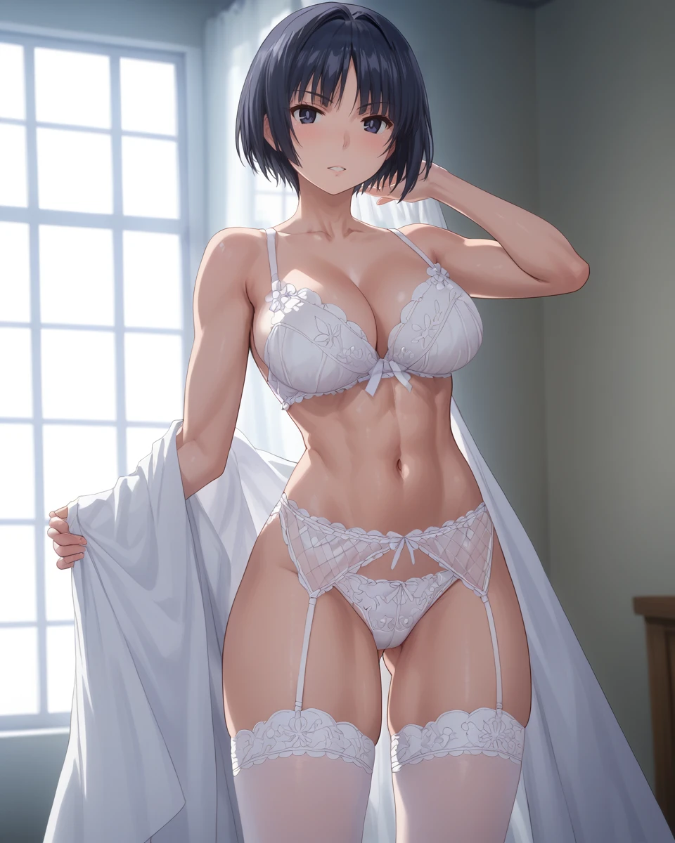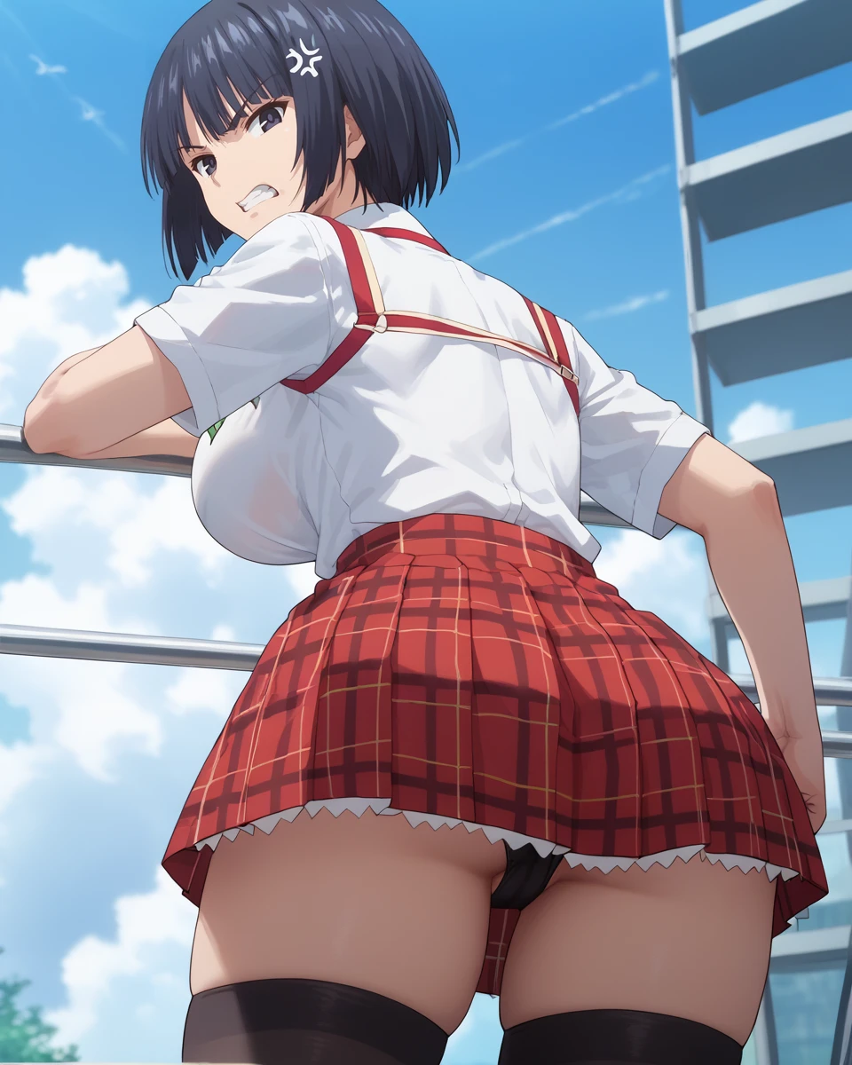 Yuuki Karin, plaid skirt, black thighhighs, school uniform