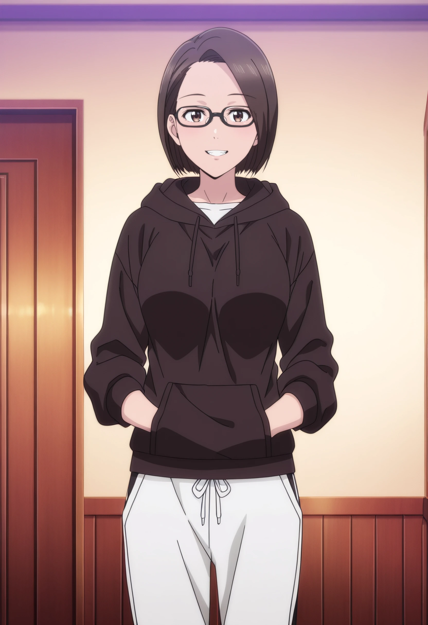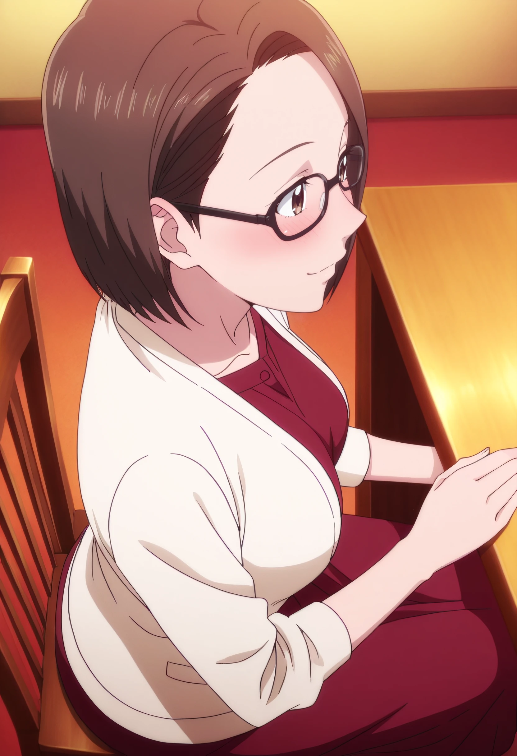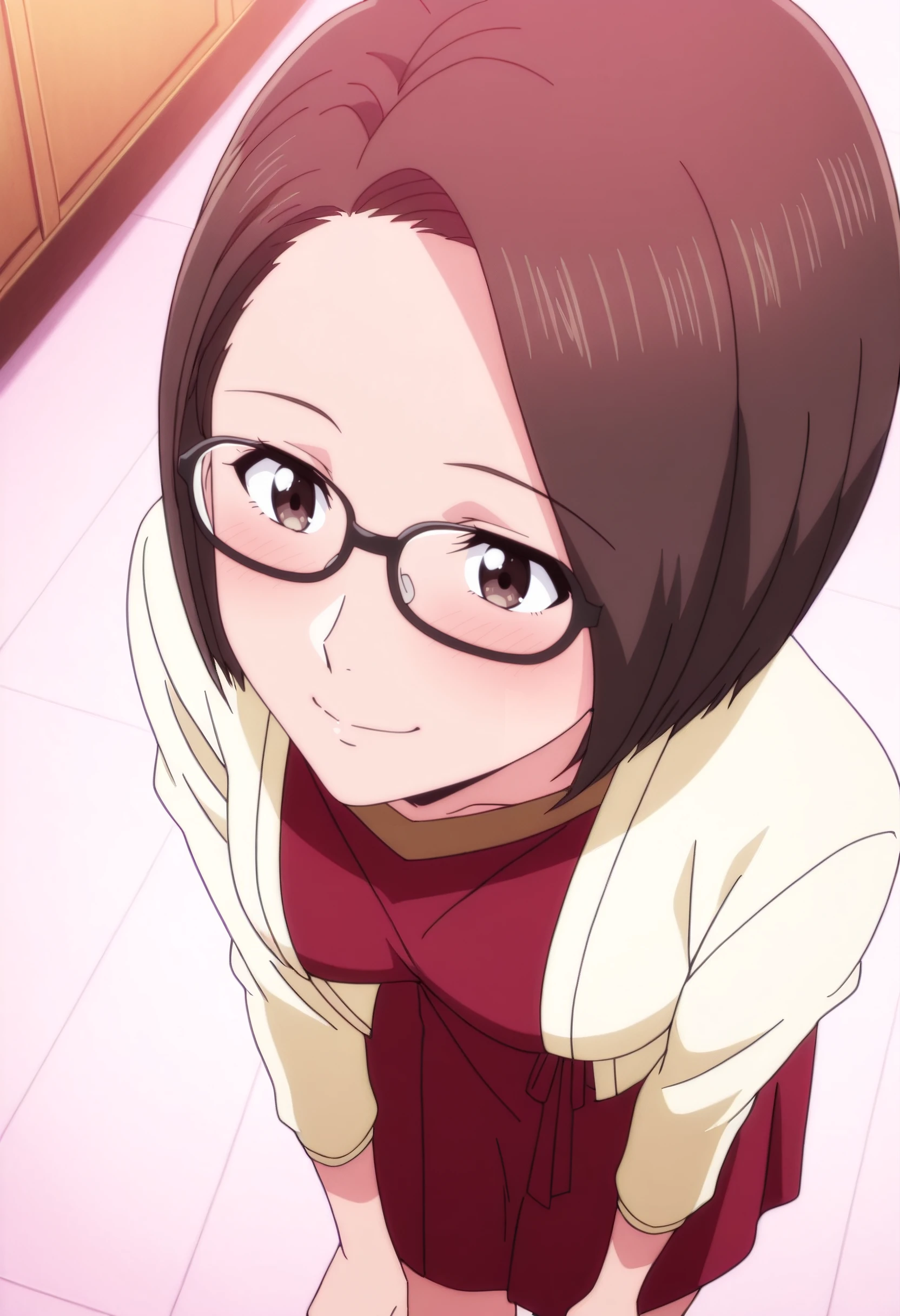 MHHKasen, brown hair, short hair, brown eyes, glasses, black-framed eyewear,