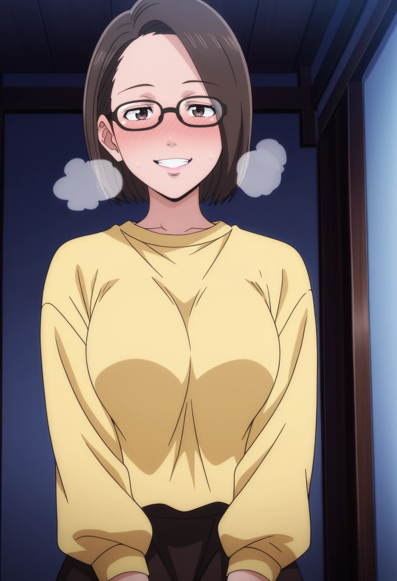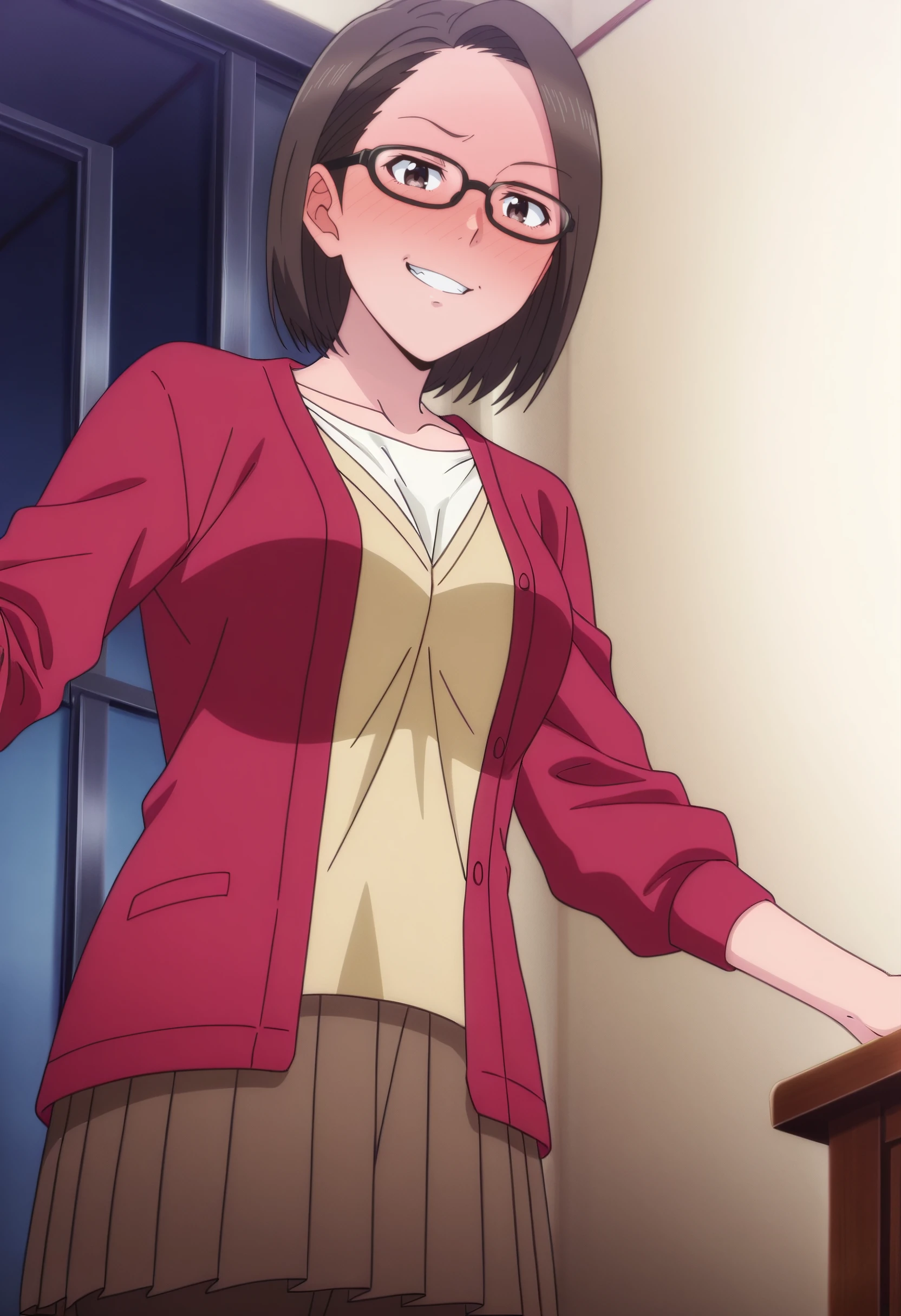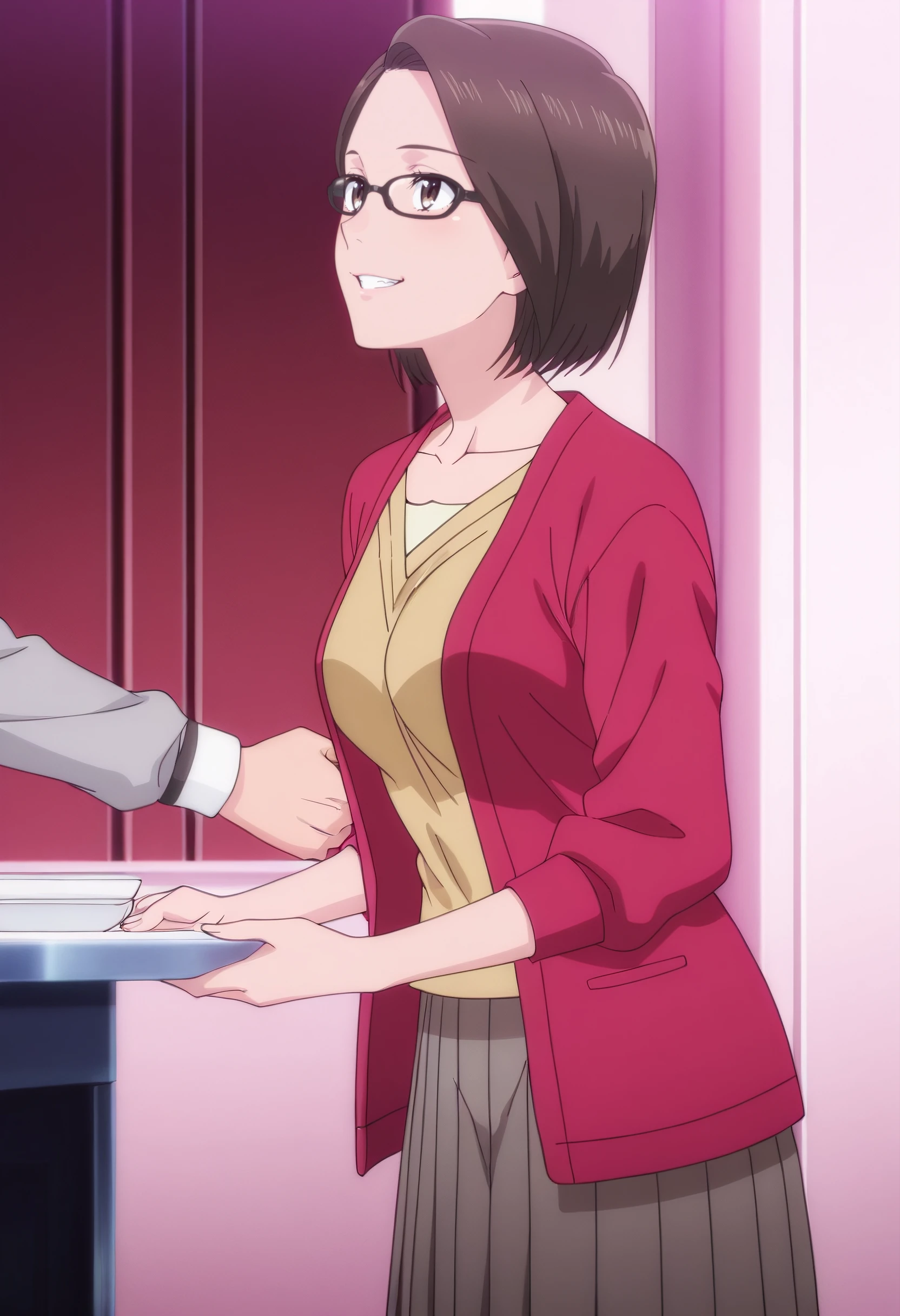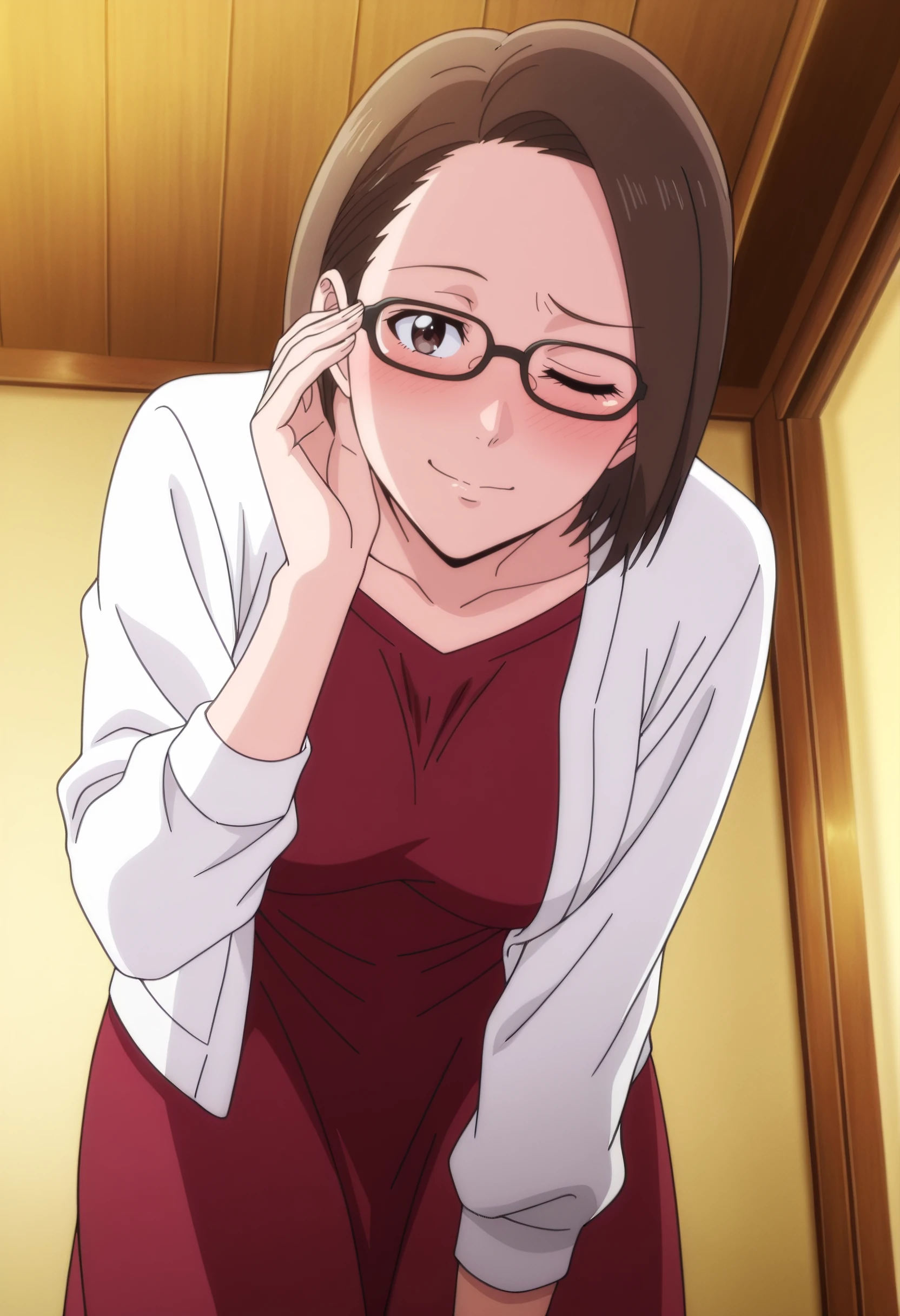 MHHKasen, brown hair, short hair, brown eyes, glasses, black-framed eyewear,