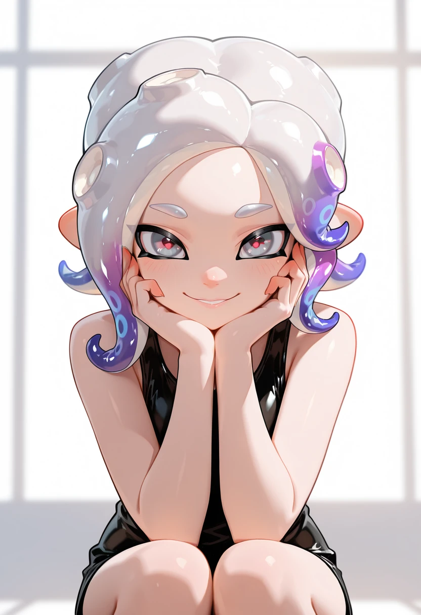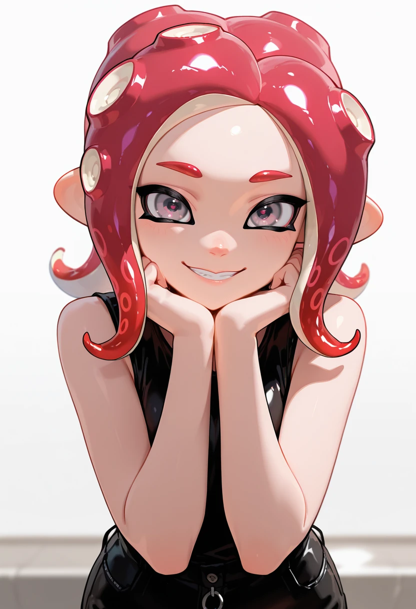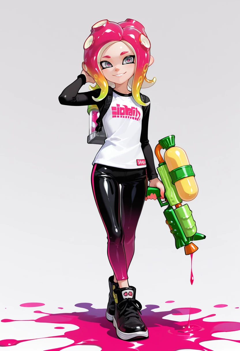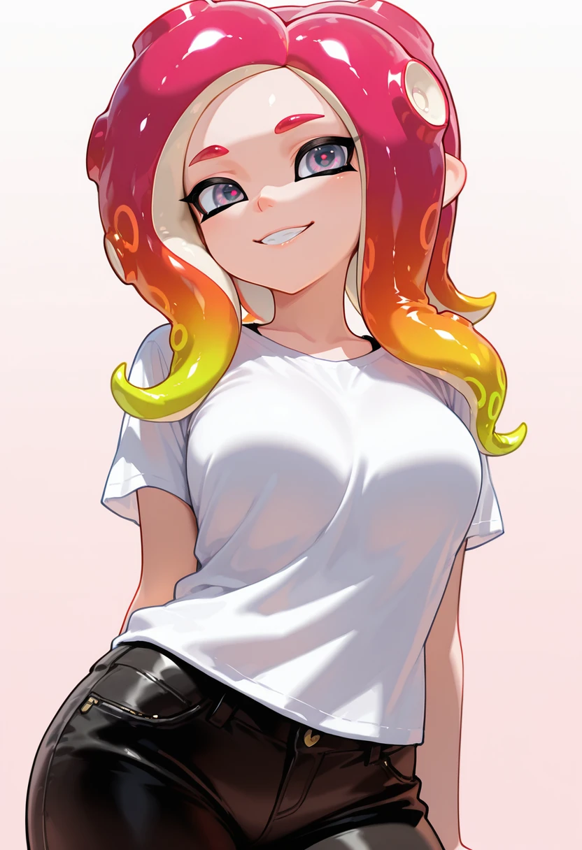 octoling, 1girl, solo, smile, golden hair, gradient hair, long hair, posing,