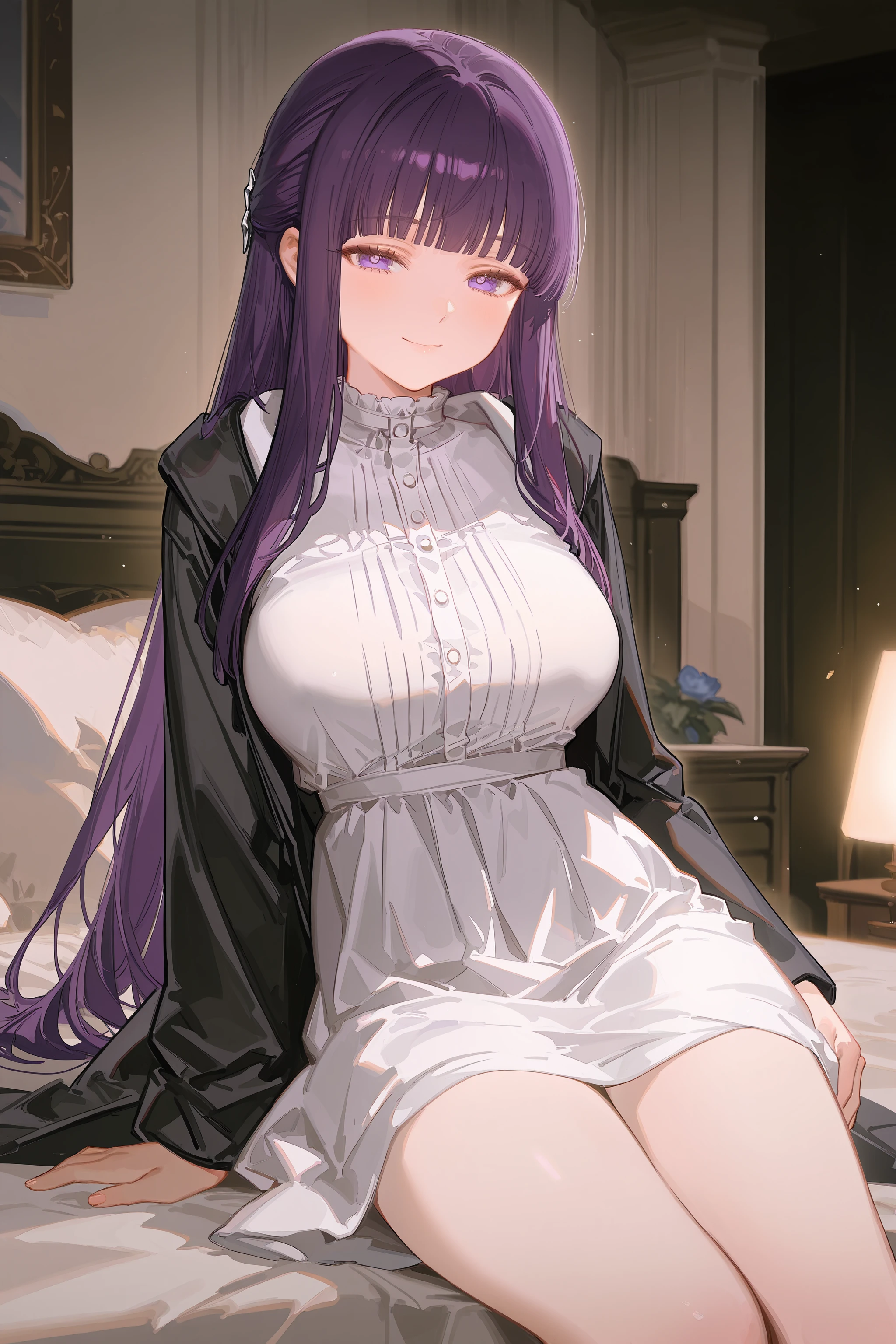 Additional prompts for default costume: black coat, long white dress, black boots