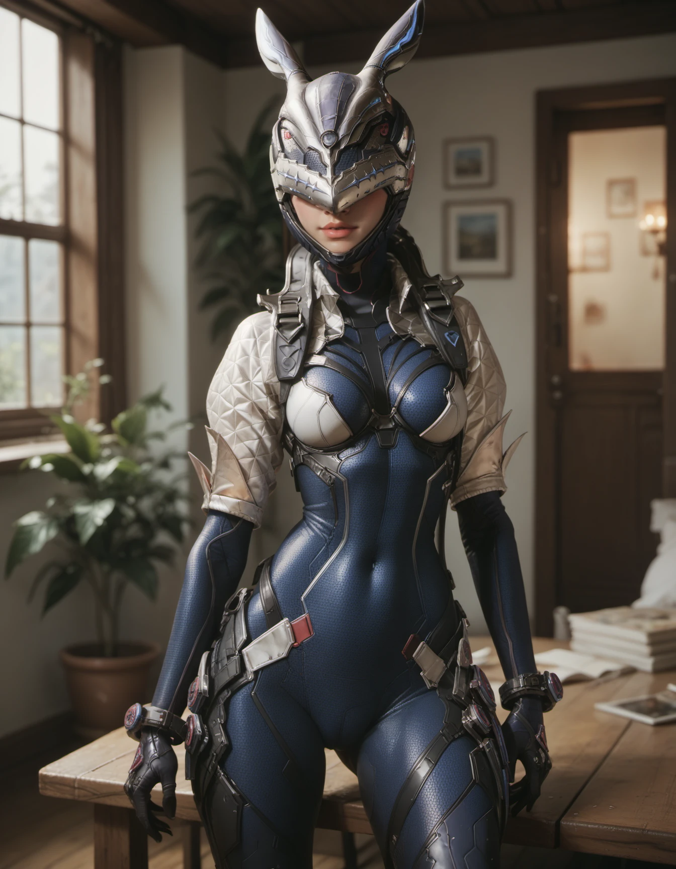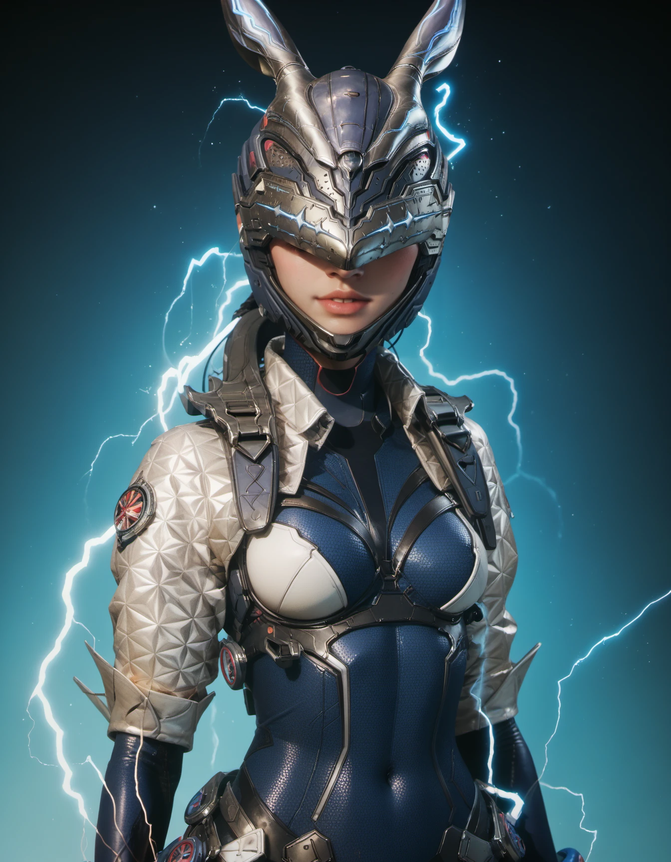 The Ult Bunny suit can be shown by using prompt: (white leotard, armor, armored boots,) there is no helmet in Ult Bunny because the default helmet overrides it.