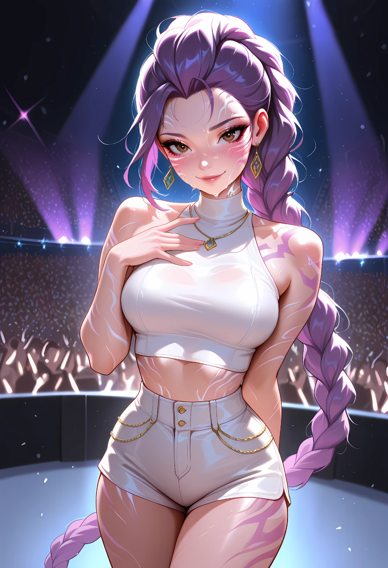 white croptop, short white shorts