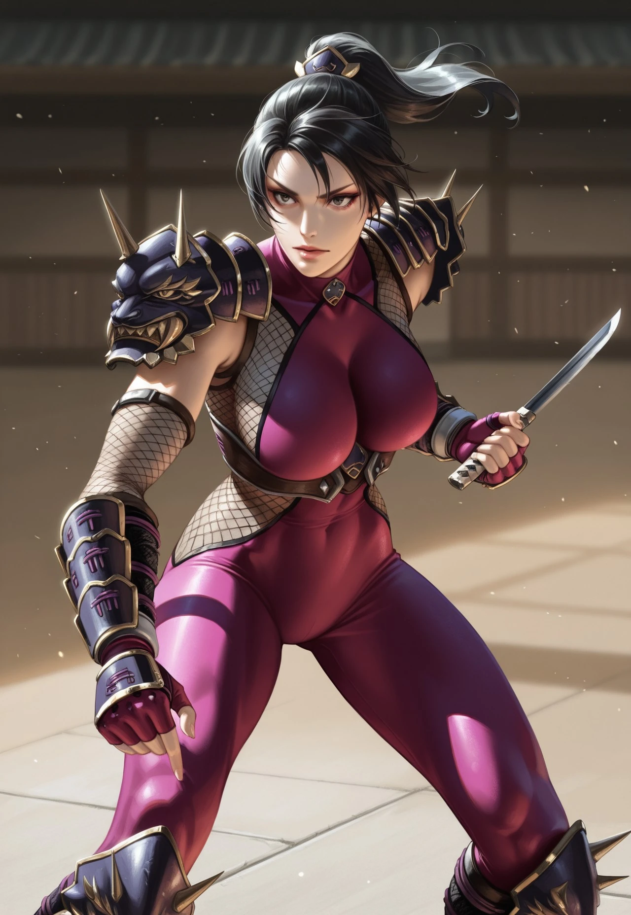 Taki, the well equipped ninja whose life's mission is to destroy the evil blade, Soul Edge. Her equipment leaves little to the imagination but her skills are unmatched!
