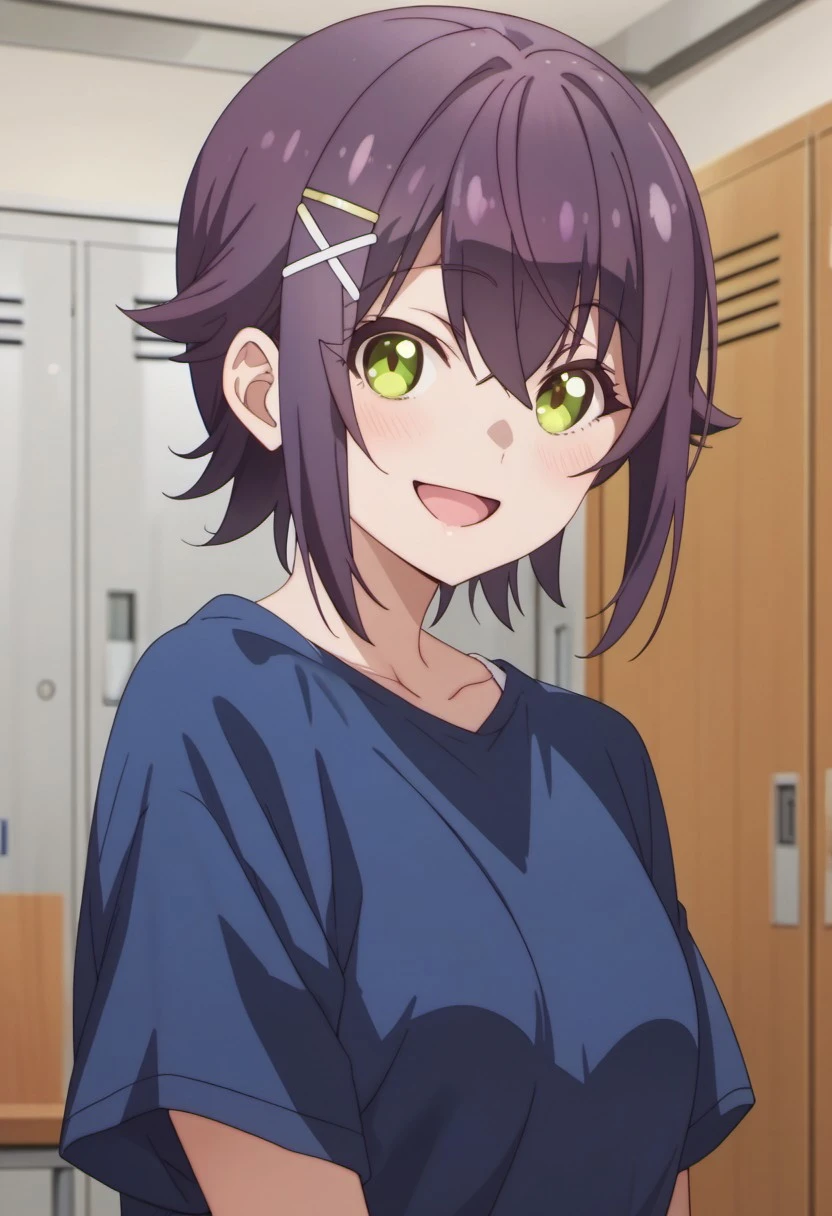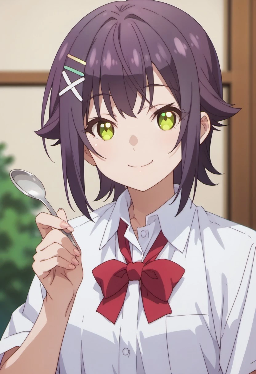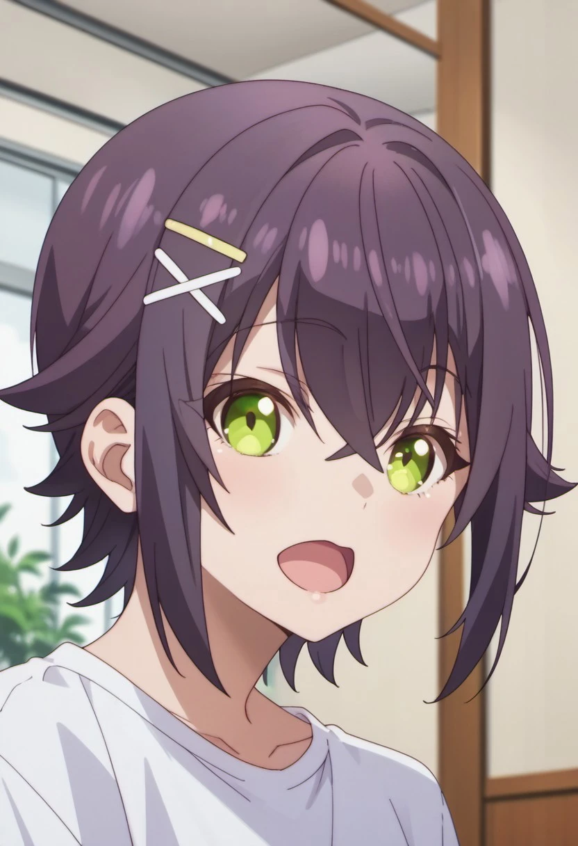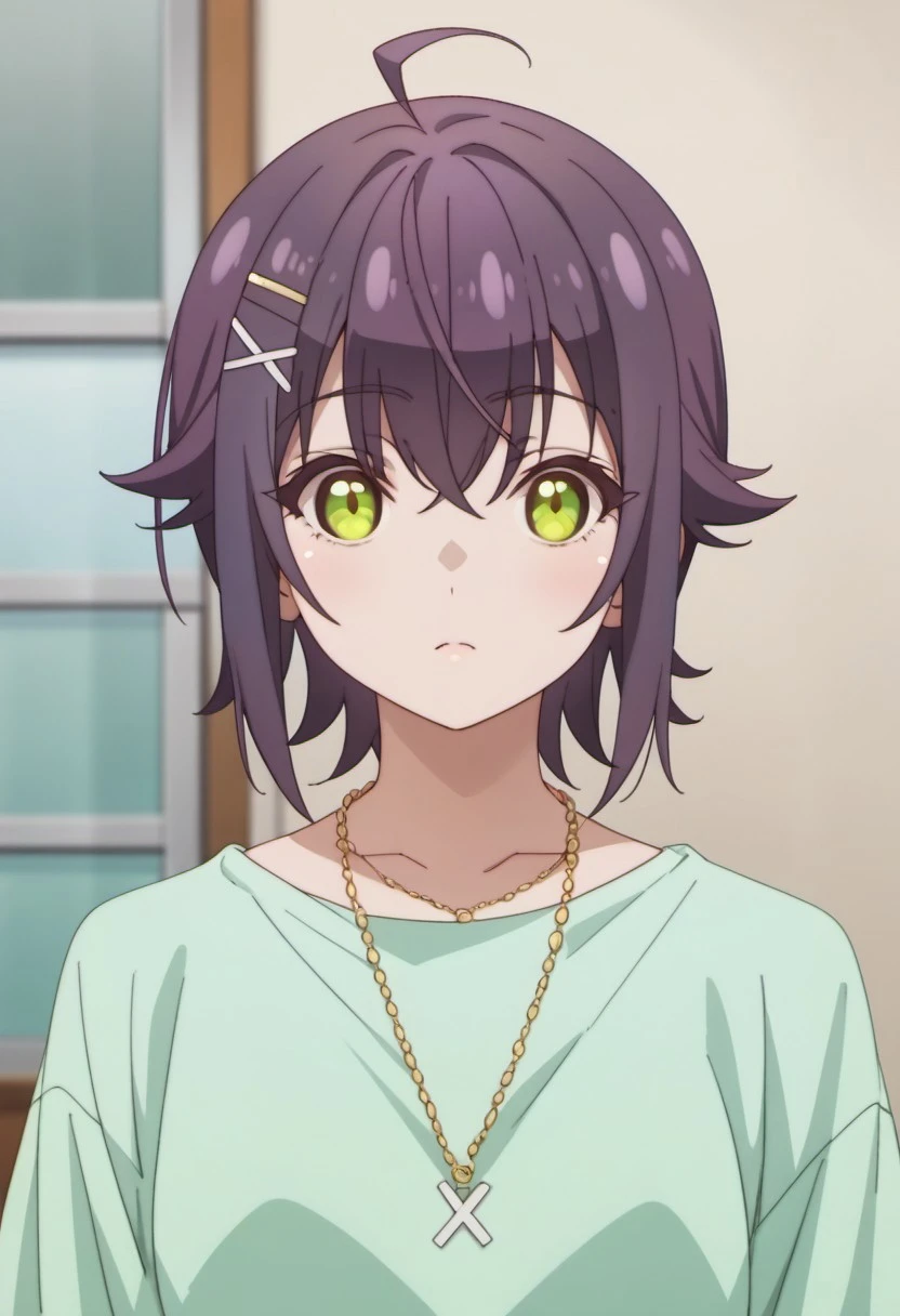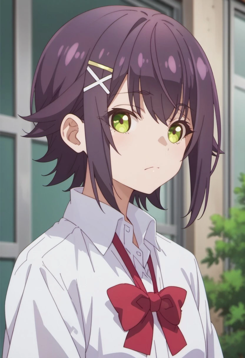 Trigger Words: ashida kei, short hair, green eyes, purple hair
