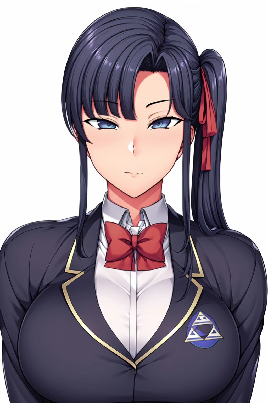 Black_hair,hair_ribbon,side ponytail,Bangs,
