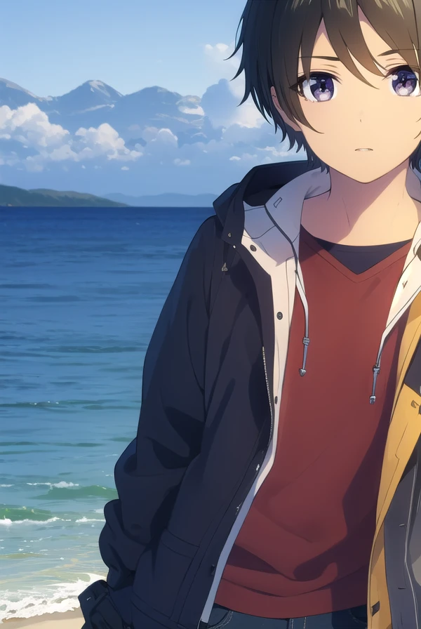 shirt, jacket, open clothes, hood, coat, hoodie, casual, red shirt,