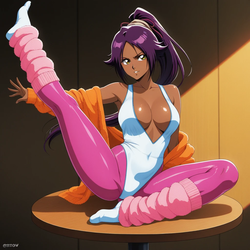 leg_warmers, cropped_sweater, neon, leggings, tented_shirt,