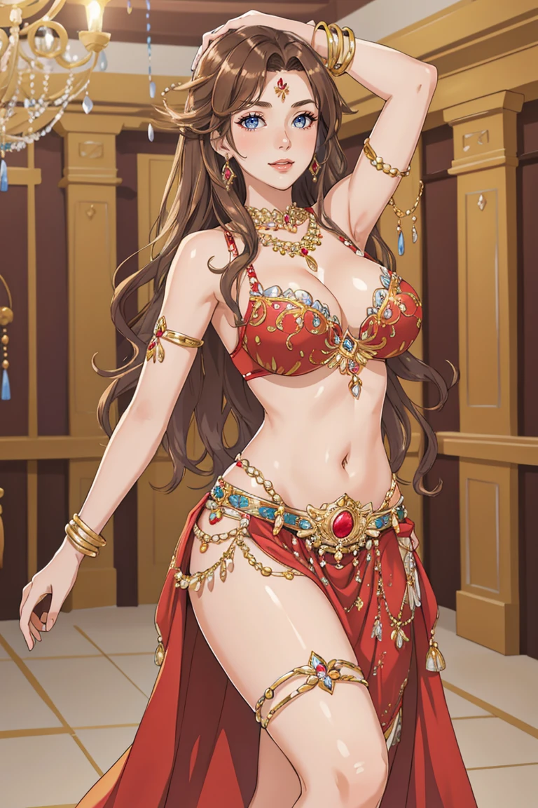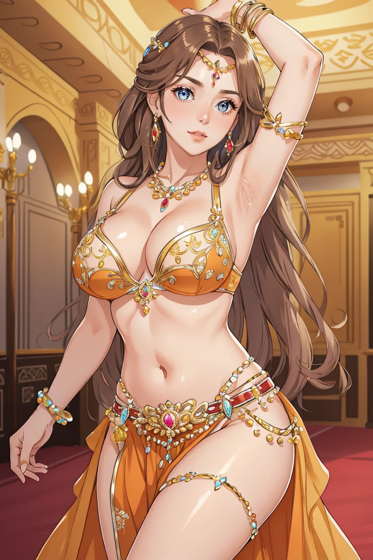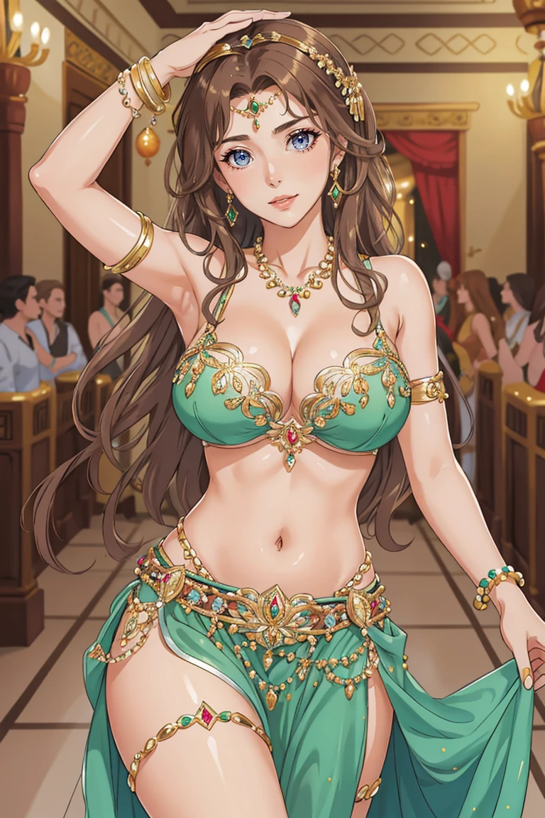 HUD_2_BllyDncr, gems, turquoise bra, arm band, anklet, long chiffon skirt, belt, jewelry