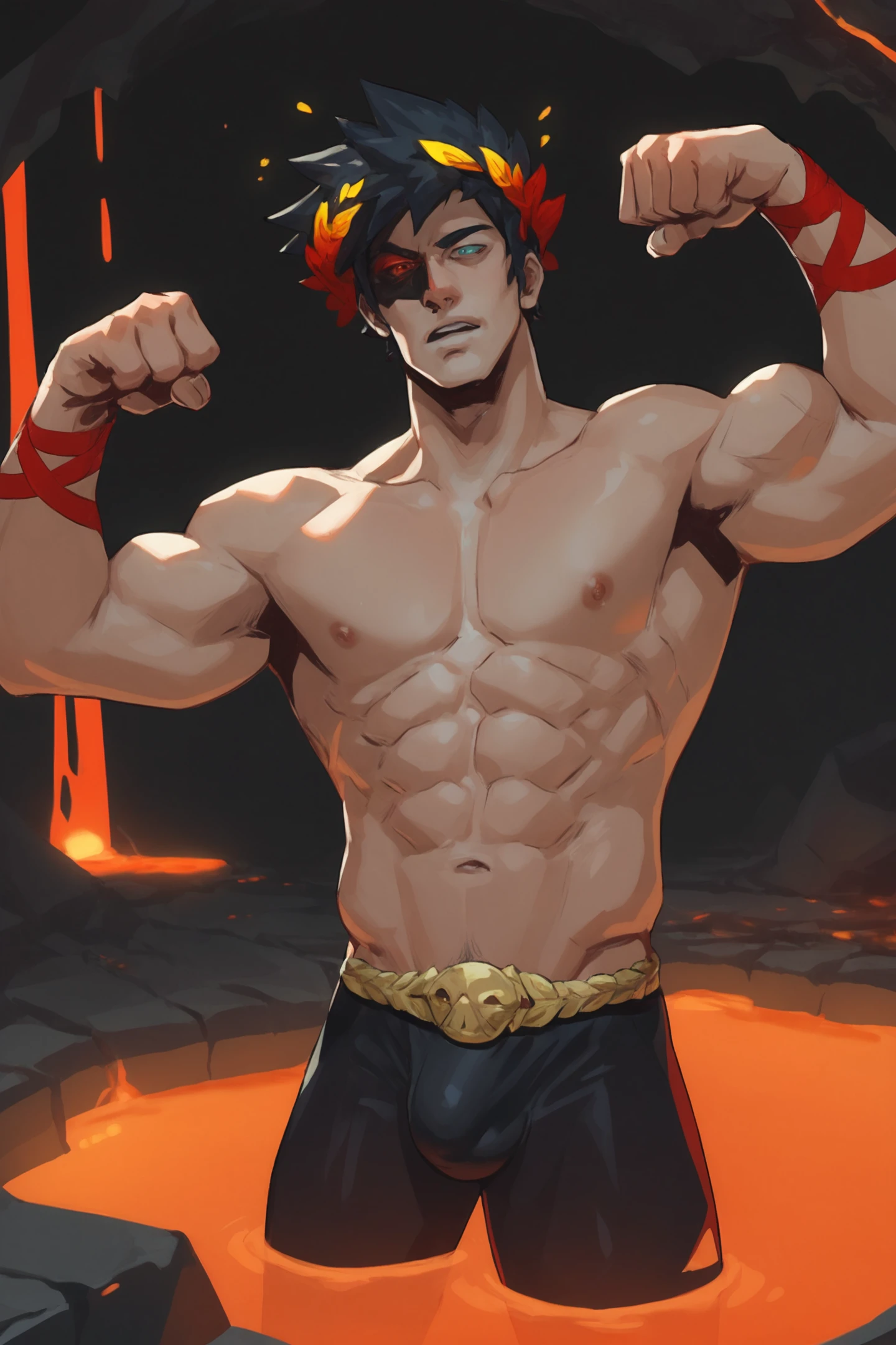 zagreus, laurel crown, 1boy, male focus, black hair, colored sclera, skull, heterochromia