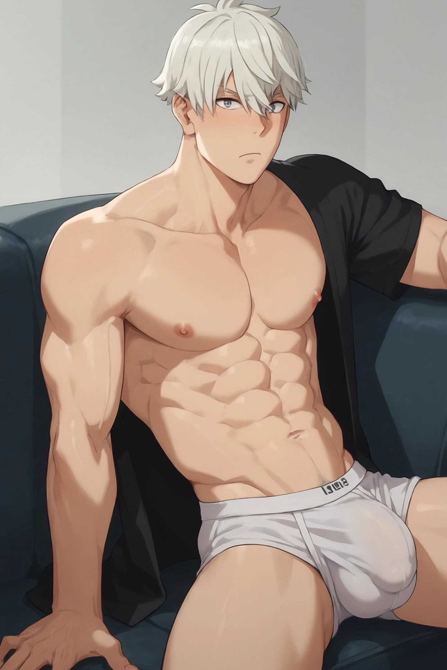 RenoIchikawa, white hair, hair between eyes, grey eyes