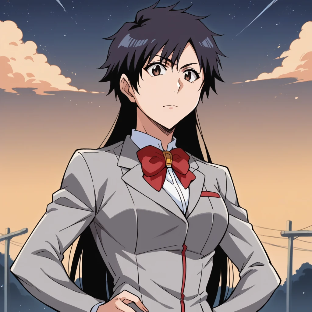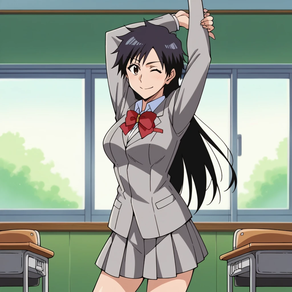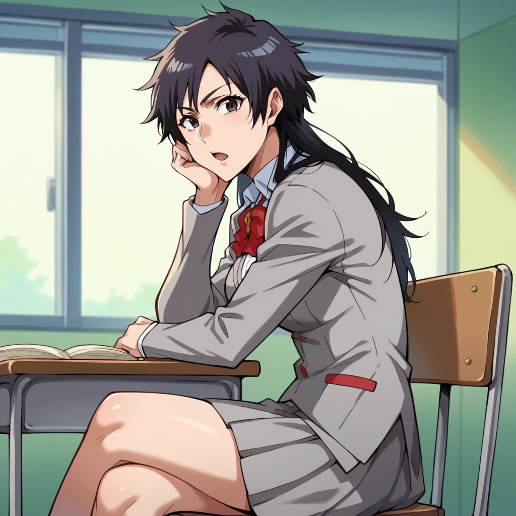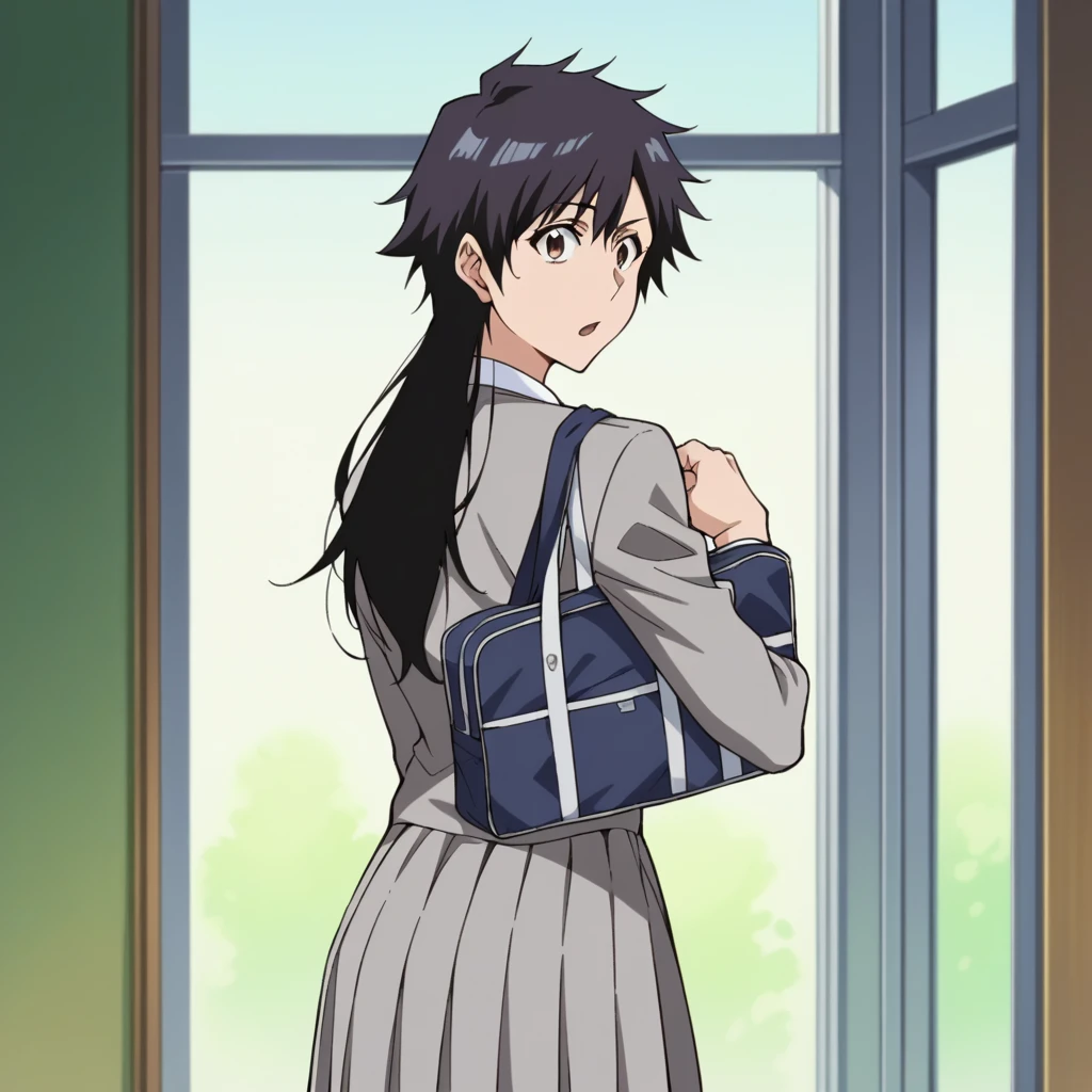 Ari_Older, black hair, long hair, brown eyes,School Outfit: