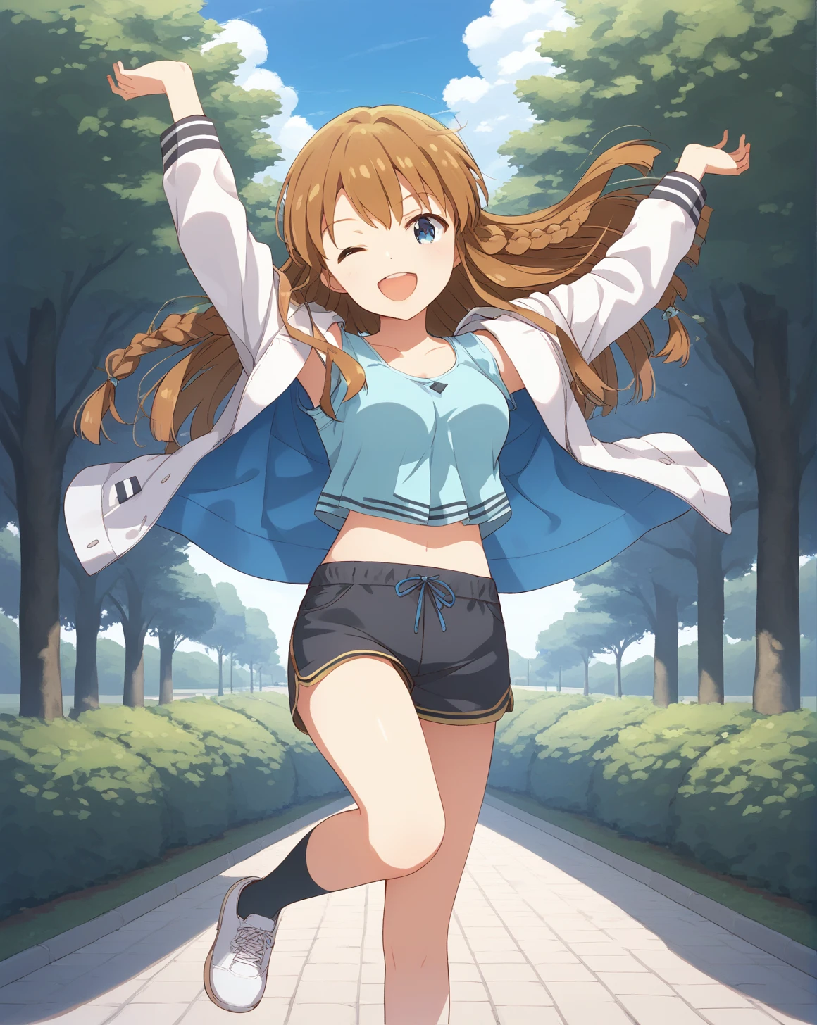 Trigger: UmiKousaka,blue eyes,brown hair,long hair,braid,medium breasts,straight hair,